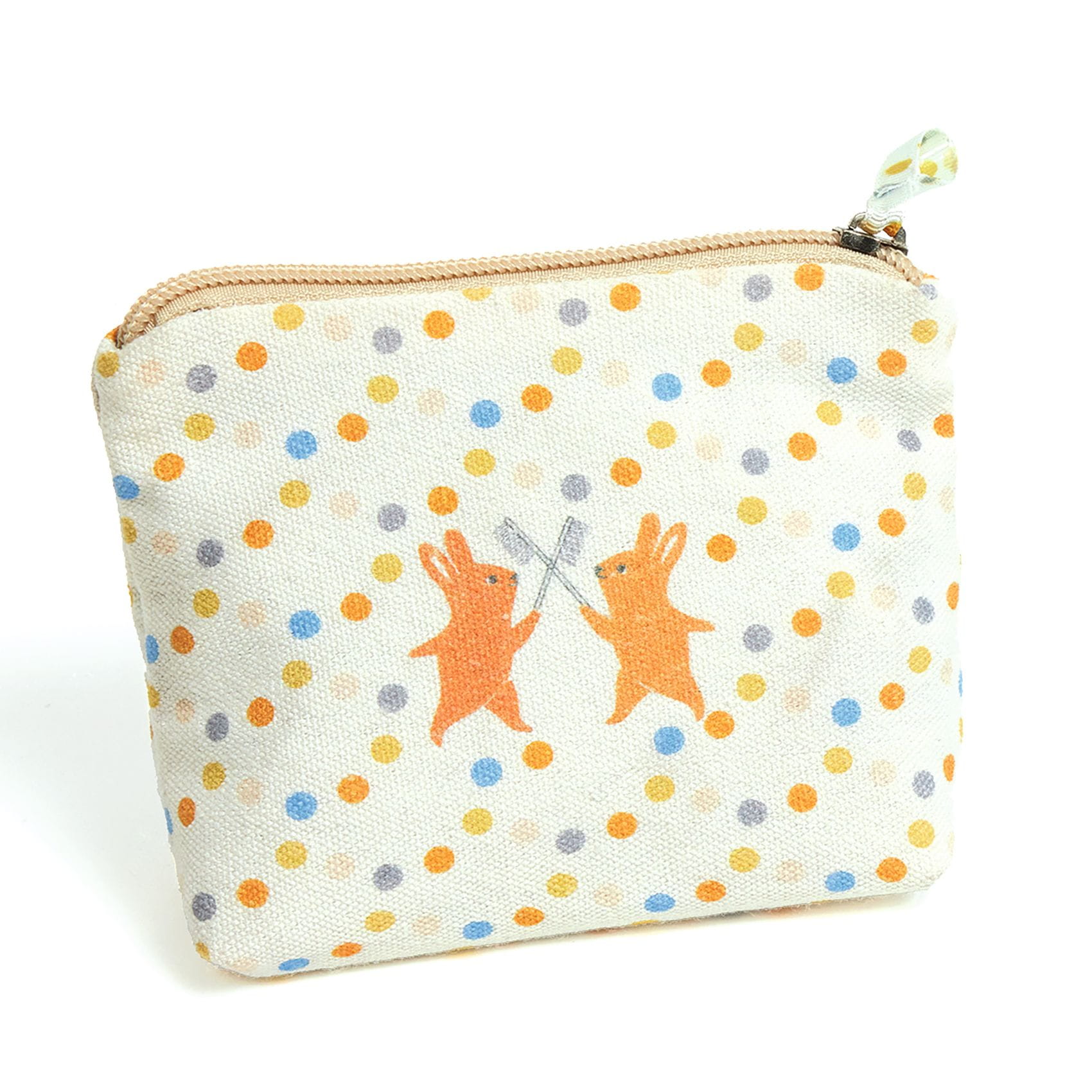 Czas na mycie zębów! Wszystkie lalki proszone są do ustawiania się w kolejce do łazienki. Kosmetyczka na zamek w groszki z dwoma króliczkami mieści tubkę z pastą, szczoteczkę do zębów, kubeczek na wodę oraz ręczniczek.