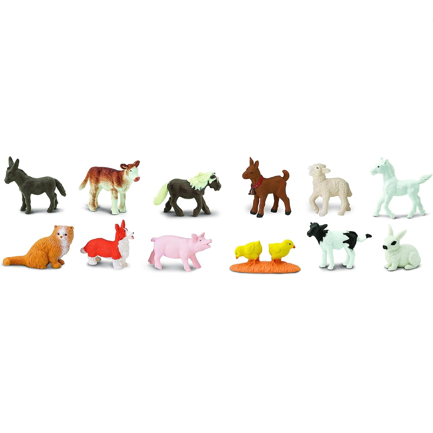 W tubie Safari, Małe Zwierzątka Wiejskie, znajduje się: osiołek, cielak, kucyk, kózka, jagniątko, źrebak, kotek, szczeniak corgi, prosiak, kurczaczki, cielaczek i króliczek. Podczas gdy rodzice tych słodkich zwierząt będą musieli pracować cały dzień na wsi, te maluchy nie mają nic do pracy poza zabawą.