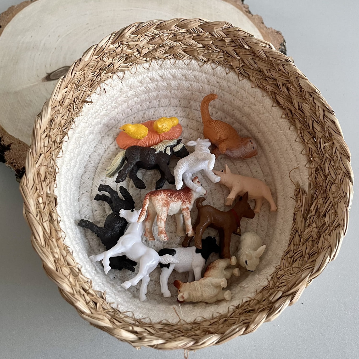 Figurki Safari są wspaniałym narzędziem edukacyjnym, wykorzystywanym podczas zajęć i zabaw Montessori, ucząc dzieci o przyrodzie, zwierzętach i otaczającym nas świecie. Zwierzątka wiejskie w tubie mają wielkość idealnie dopasowaną do małych rączek. Tuba jest wielokrotnego użytku z zamknięciem i sznureczkiem, dzięki czemu ukochane zwierzątka można włożyć do tuby i zabrać ze sobą w drogę.