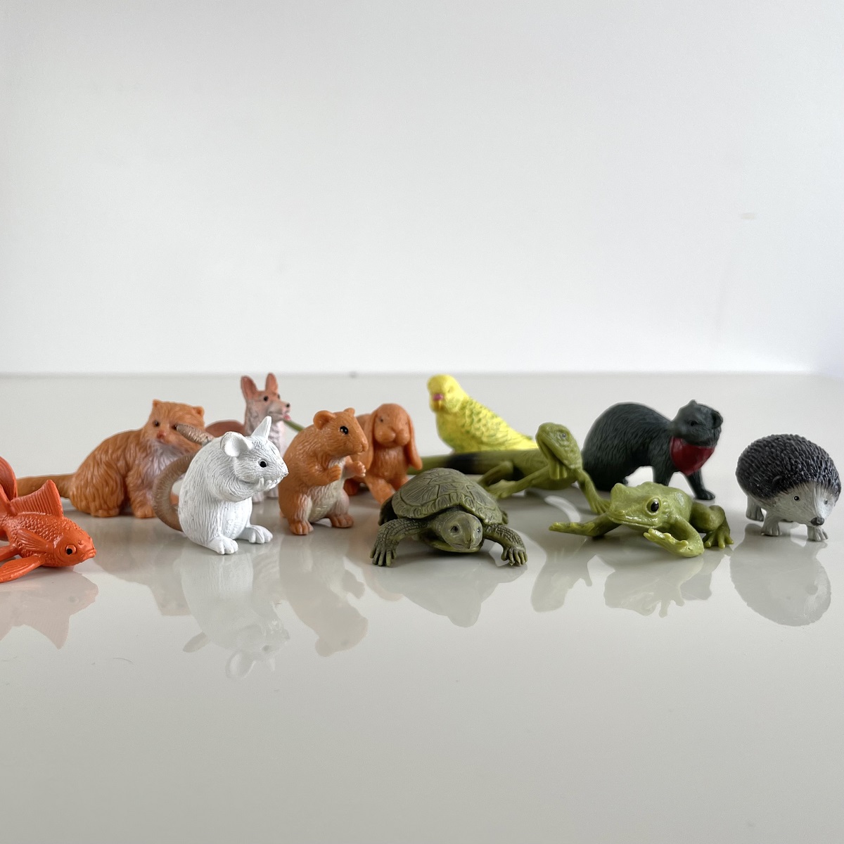 Tuba Zwierzęta Domowe zawiera jednych z najbardziej ukochanych przez dzieci i dorosłych pupilków: iguanę, żółwia, jeża, chomika, złotą rybkę, żabę, kota, fretkę, psa corgi, papugę, myszkę i królika.