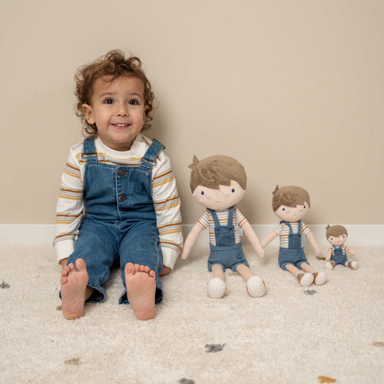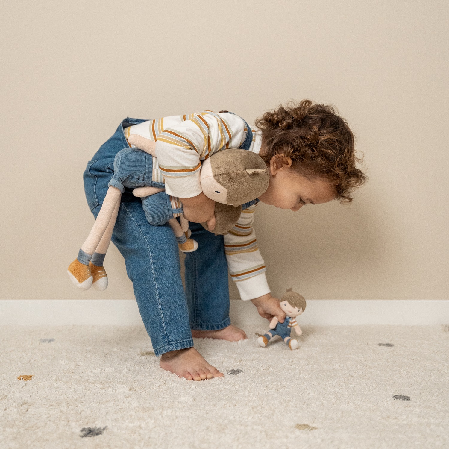 Urocza, malutka przytulanka, wykonana z miłego i miękkiego materiału. Będzie wspaniałym towarzyszem wszystkich zabaw, a dzięki niewielkim rozmiarom można mieć go zawsze przy sobie. Wyglądem przypomina prawdziwego chłopca. Laleczka posiada koszulkę w paski, krótkie spodenki z szelkami w kolorze granatowym z guziczkami oraz musztardowe buciki. Można ją posadzić. Laleczka zapakowana jest w piękne, kartonowe pudełeczko ze sznureczkiem - dlatego idealnie nadaje się na prezent. Do kompletu można dokupić również lalkę Jim w rozmiarze 35 lub 50 cm. Będzie stanowić świetne uzupełnienie do pozostałych zabawek z kolekcji Vintage Sunny Stripes.