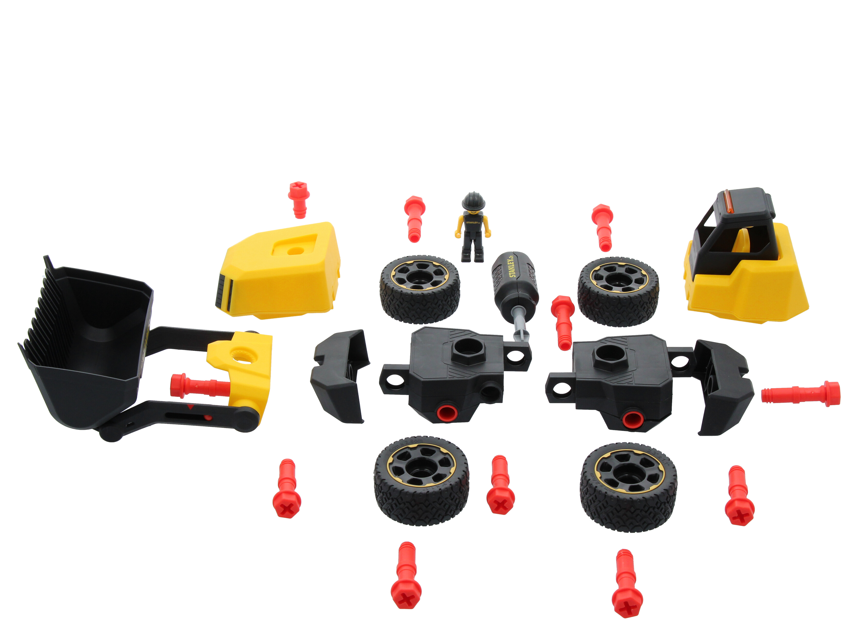W 24-elementowym zestawie znajdują się wszystkie części potrzebne do zbudowania koparki, w tym plastikowy śrubokręt, śrubki i figurka do zabawy. Pojazd jest wstępnie zmontowany. Do zestawu dołączono instrukcję.