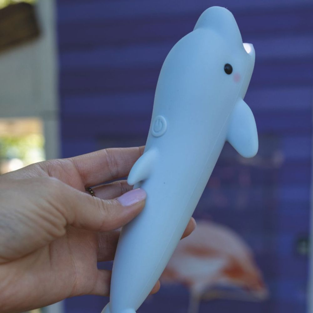 Odkryj wyjątkową latarkę w kształcie uroczego delfina od Rabbit & Friends – idealne połączenie zabawy i praktyczności. Wykonana z miękkiego silikonu, doskonale dopasowuje się do rączek małych odkrywców, a jej regulacja jasności pozwala dostosować światło do potrzeb każdej przygody. Znakomita na wieczorne opowieści, teatr cieni czy rozświetlanie nocnych zakamarków.