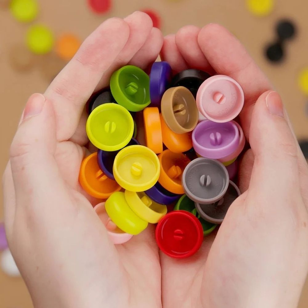 Nakładki Scru-Dot montuje się intuicyjnie na śrubkach Makedo – wystarczy je docisnąć, bez użycia narzędzi. Dzięki temu nawet młodsze dzieci mogą samodzielnie dekorować swoje projekty i cieszyć się pełną swobodą twórczą. Zabawa detalem rozwija wyobraźnię przestrzenną, uczy planowania oraz zachęca do eksperymentowania.