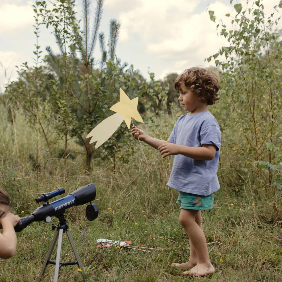 Wyposażony w finderscope z krótszą ogniskową, KIDYTELESCOPE ułatwia namierzenie interesujących Cię obiektów na niebie. Po ustawieniu ich w osi, teleskop pozwala na dokładną regulację ostrości, zapewniając wyraźny i szczegółowy obraz dzięki średnicy obiektywu 50 mm i ogniskowej 360 mm.