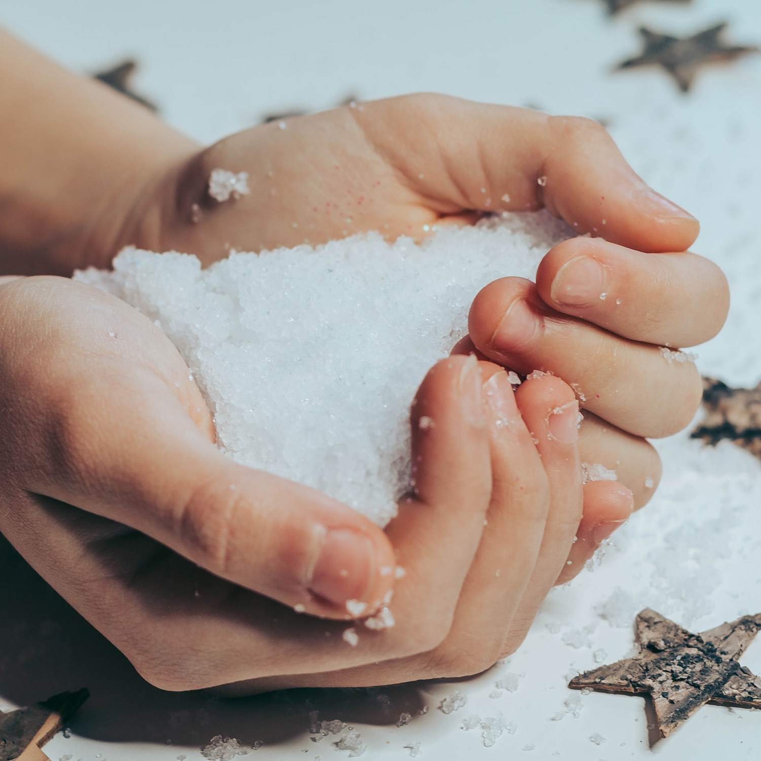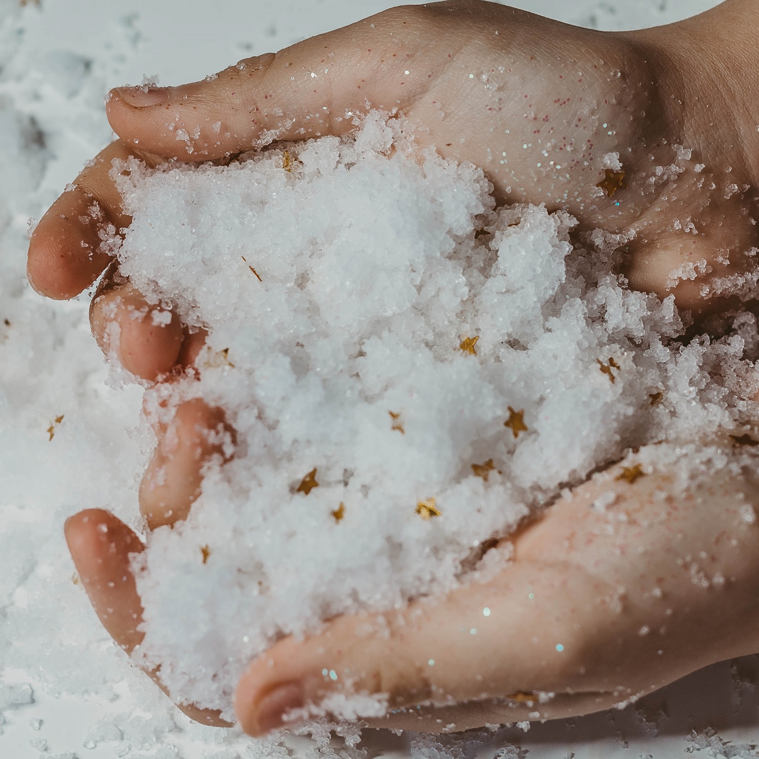 Jak się bawić? Wsyp śnieżny proszek do pojemnika. Napełnij pojemnik chłodną wodą. Ilość wody wlanej do pojemnika powinna wynosić od 50 do 70% jego objętości. Gotowe! Jak za dotknięciem czarodziejskiej różdżki – Twój proszek zmieni się w śniegowy puch. Sztucznego śniegu możesz używać do dekoracji. Jeśli chcesz śnieg dodać do slima, podczas przygotowania go, zamiast wody użyj aktywatora.
