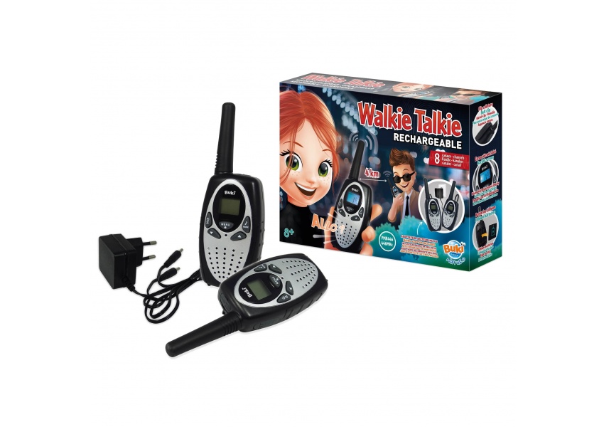 Odkrywaj świat przy użyciu walkie-talkie o zasięgu do 4 km (w terenie niezabudowanym). Działa z bateriami litowymi i adapterem sieciowym, oba w zestawie. Wiele funkcji: 8 kanałów do wykorzystania w dowolnym miejscu, tryb rozmowy z 10 dźwiękami wywołania, podświetlany ekran itp.