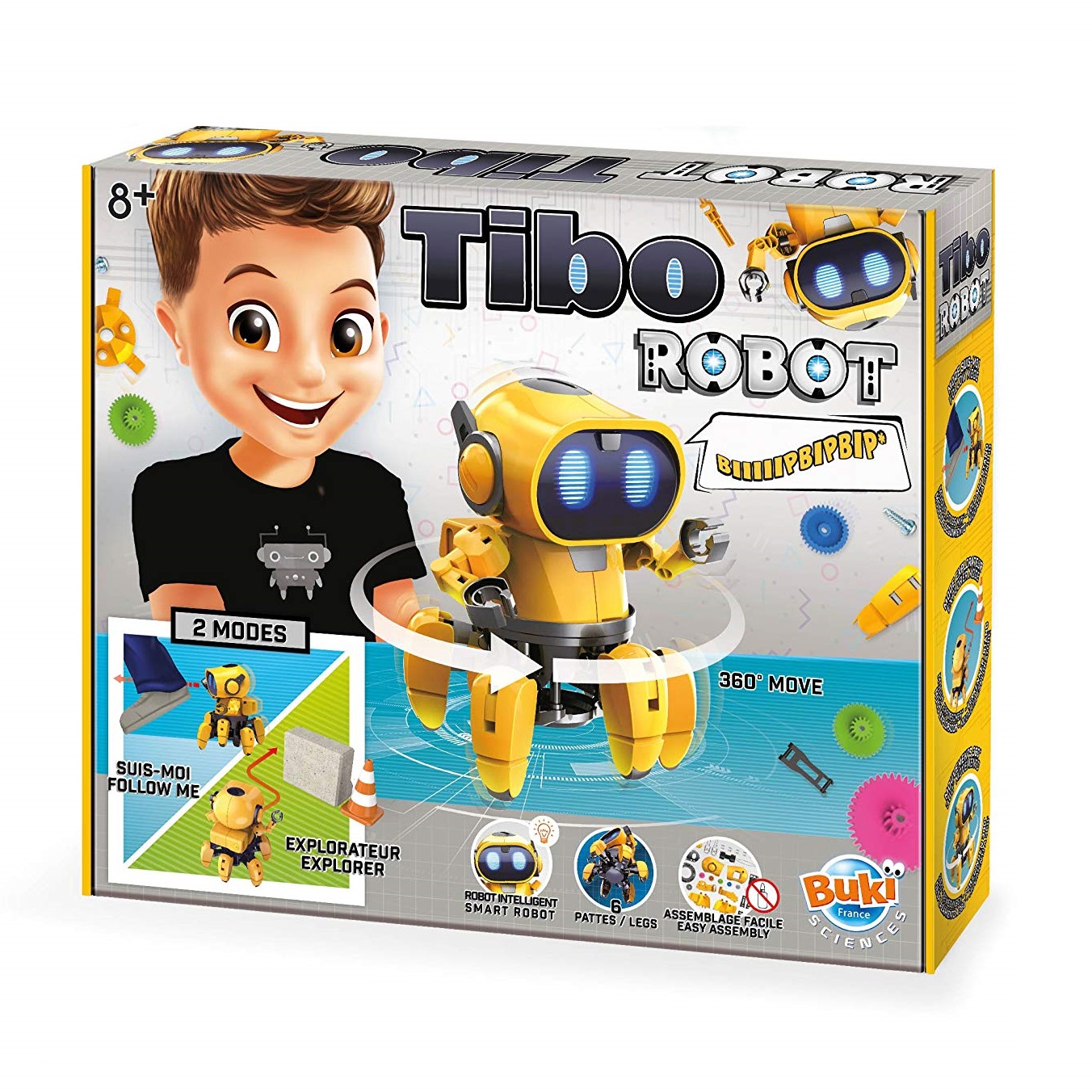 POWIADOM MNIE kiedy będzie dostępnyZłóż robota TIBO i odkryj jego niesamowite funkcje: tryb podążania: przy użyciu swoich czujników robot wykrywa dziecko i podąża za jego krokami; tryb odkrywcy: robot wędruje po pokoju i unika przeszkód, używając swoich 6 odnóży do ruchu w 360 stopniach. Wymagane 4 baterie AAA (nie dołączone do zestawu).