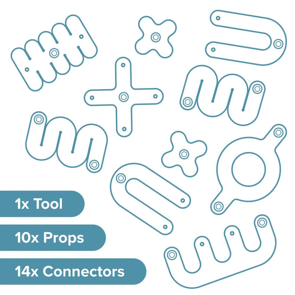 Zestaw może być używany zarówno jako dodatek do większych zestawów narzędzi Makedo, jak i samodzielna jednostka konstrukcyjna - oprócz kreatywnych kształtów w komplecie znajdziemy śrubki oraz proste narzędzie do ich wkręcania.