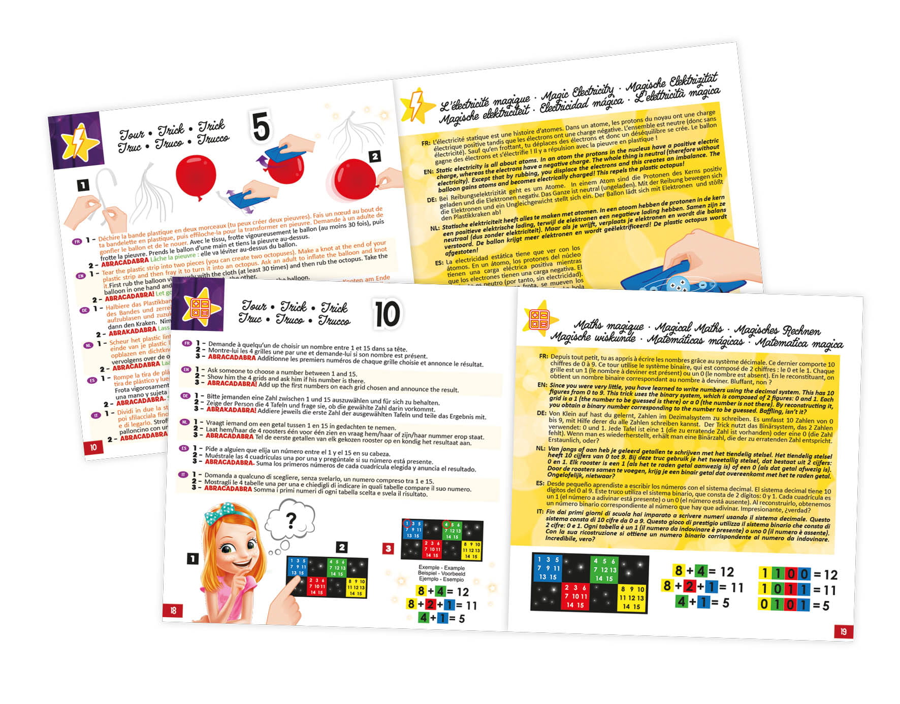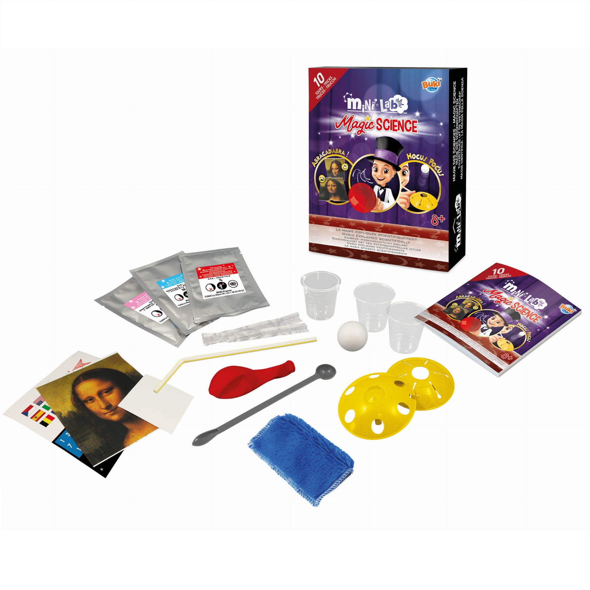 Zestaw do wykonania 10 magicznych sztuczek wyjaśnionych nauką. Spraw, by przedmioty lewitowały za pomocą elektryczności statycznej, zamień ciekłą wodę w stałą i odkryj złudzenia optyczne. Idealny zestaw dla małego czarodzieja.