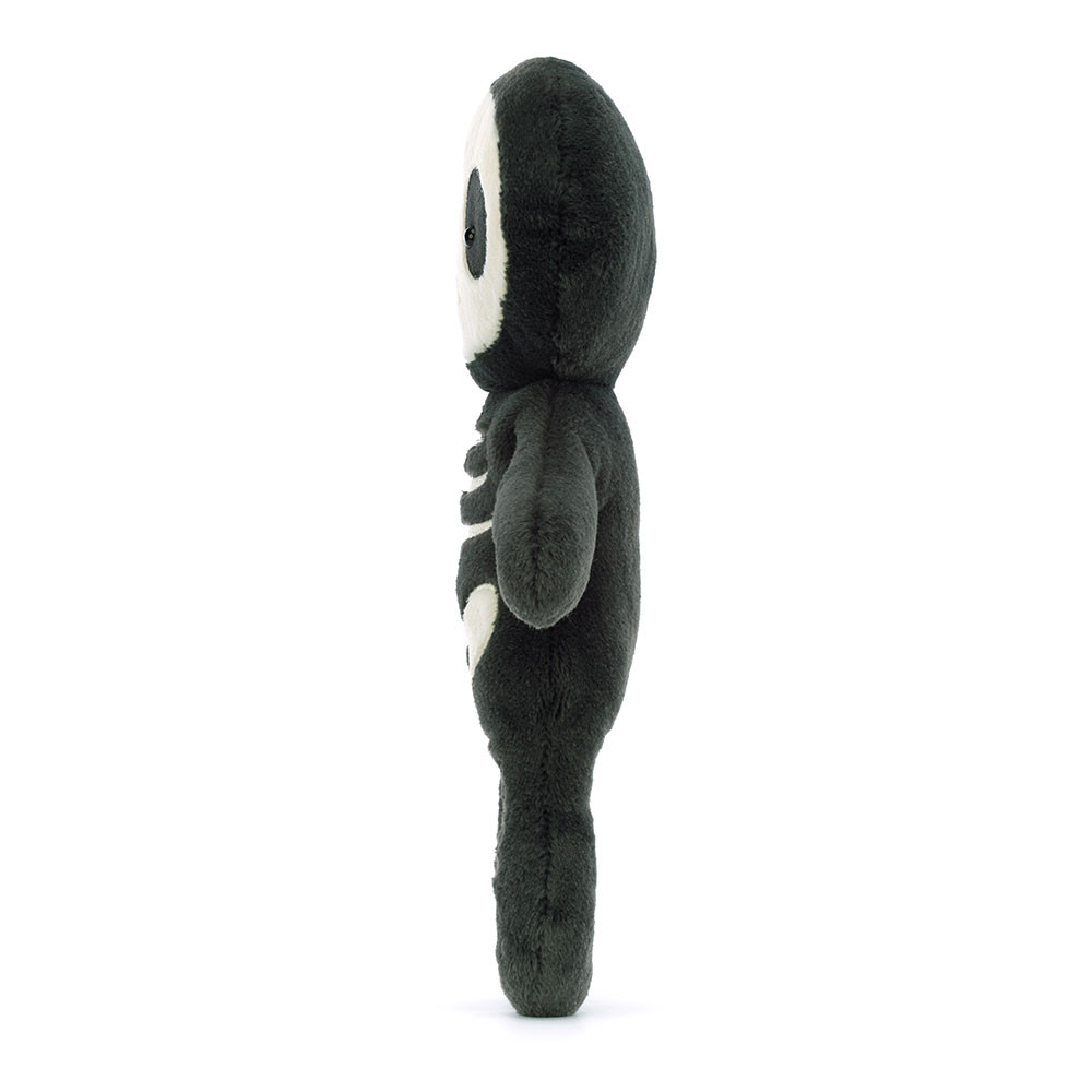 Kostek Cukierek albo Psikus marki Jellycat z kolekcji Halloween to bardzo miły i przyjemny w dotyku pluszak. Ma dużą główkę, błyszczące koralikowe oczka, sympatyczną buźkę i efektowne białe kostki. Pluszak został uszyty z najwyższej jakości, trwałych i bezpiecznych dla dzieci materiałów.