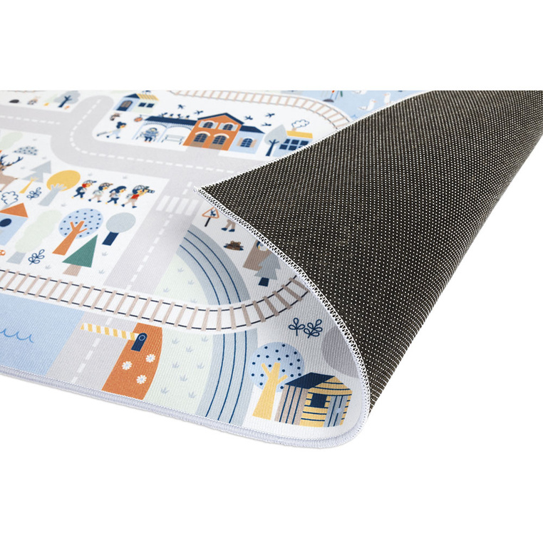 Mata-dywan do zabawy z drogą Góry z kolekcji Cross Roads to idealny prezent dla dzieci już od 2. roku życia. Ma spore rozmiary 120 x 77,5 cm, jest przyjemna w dotyku oraz pozostaje na swoim miejscu, dzięki antypoślizgowej warstwie spodniej. Mata przedstawia bogatą w szczegóły wioskę w sercu zimowego krajobrazu, w którym dziecko może za każdym razem odkrywać coś nowego. Znajdzie w nim różne postacie oraz charakterystyczne miejsca m.in. dziki staw, miasteczko czy szlak rowerowy, a wszystkie punkty łączy sieć dróg. Mata Biała dolina wprowadzi najmłodszych w świat gór, podróży i różnych środków transportu.