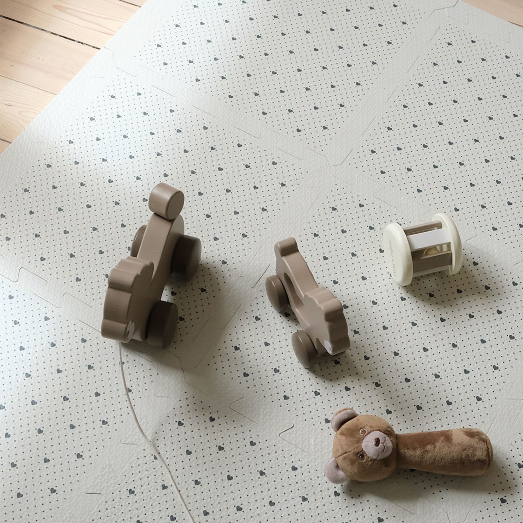 Zapewni bezpieczne i komfortowe miejsce do zabawy, ćwiczenia nowych umiejętności, raczkowania czy przekręcania się z pleców na brzuszek. Mata ma optymalne wymiary 100x100 cm oraz idealną twardość. Doskonale sprawdzi się podczas prób podnoszenia się, ponieważ tworzy dziecku stabilne podparcie. Z drugiej strony jest odpowiednio miękka i amortyzuje niekontrolowane upadki. Została wykonana z certyfikowanej pianki EVA, która jest bezpieczna dla najmłodszych. Pianka bardzo dobrze izoluje podłoże przed zimnem, dzięki czemu maluch nie zmarznie podczas zabawy.