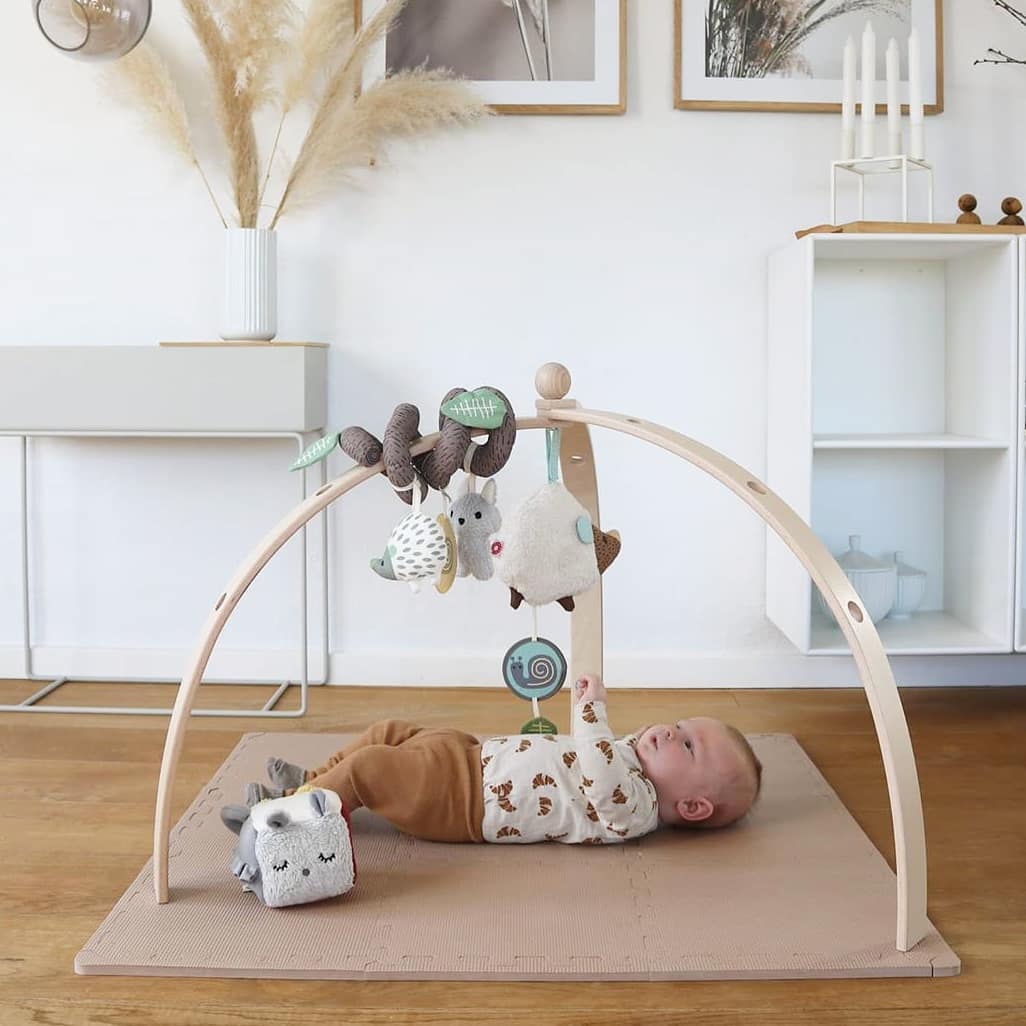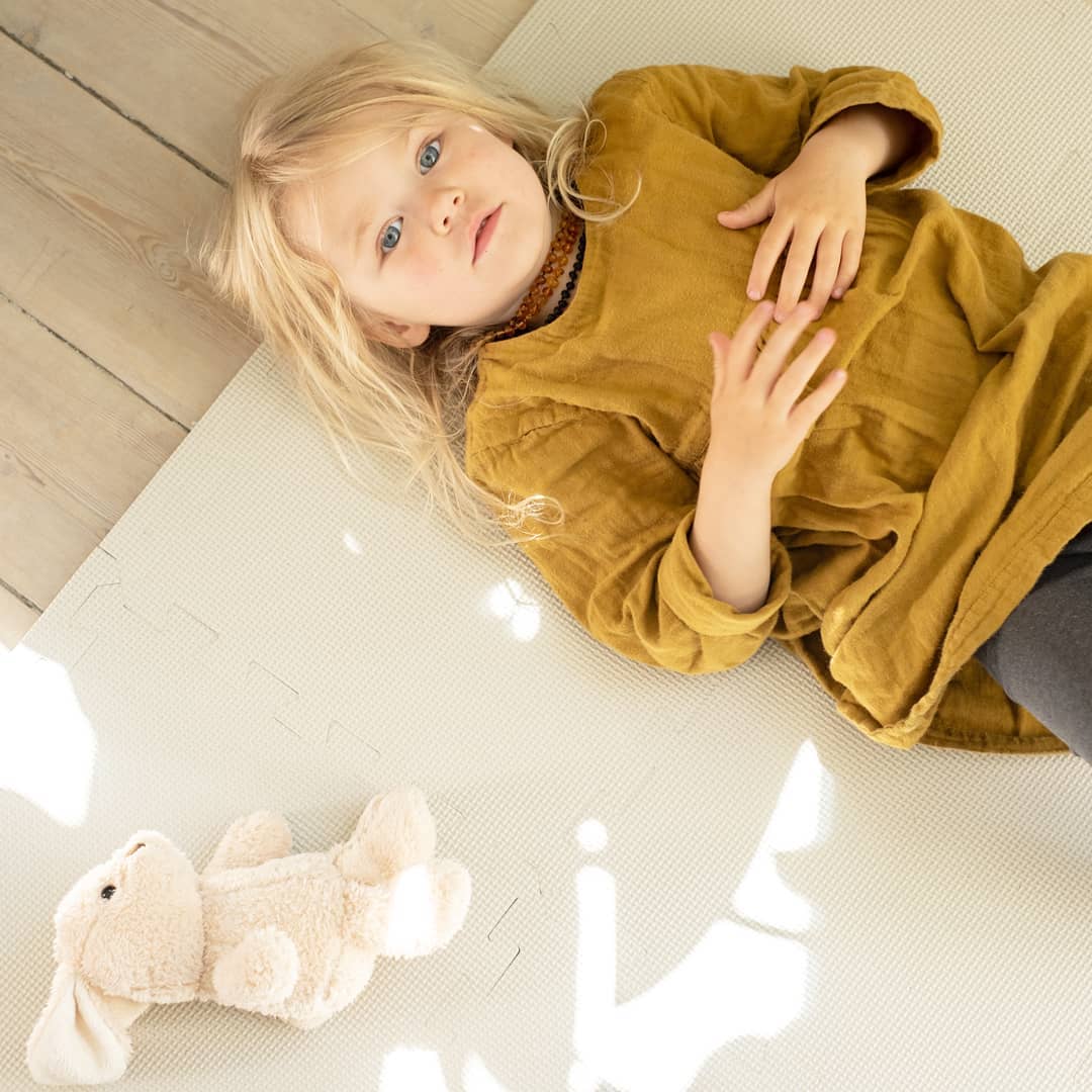 Zapewni bezpieczne i komfortowe miejsce do zabawy, ćwiczenia nowych umiejętności, raczkowania czy przekręcania się z pleców na brzuszek. Mata ma optymalne wymiary 100x100 cm oraz idealną twardość. Doskonale sprawdzi się podczas prób podnoszenia się, ponieważ tworzy dziecku stabilne podparcie. Z drugiej strony jest odpowiednio miękka i amortyzuje niekontrolowane upadki. Została wykonana z certyfikowanej pianki EVA, która jest bezpieczna dla najmłodszych. Pianka bardzo dobrze izoluje podłoże przed zimnem, dzięki czemu maluch nie zmarznie podczas zabawy.