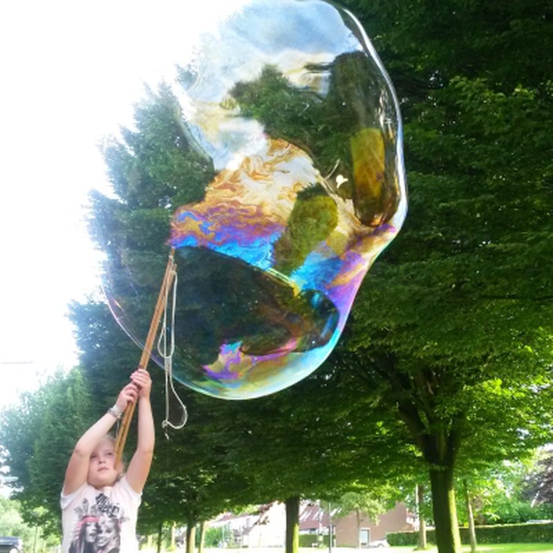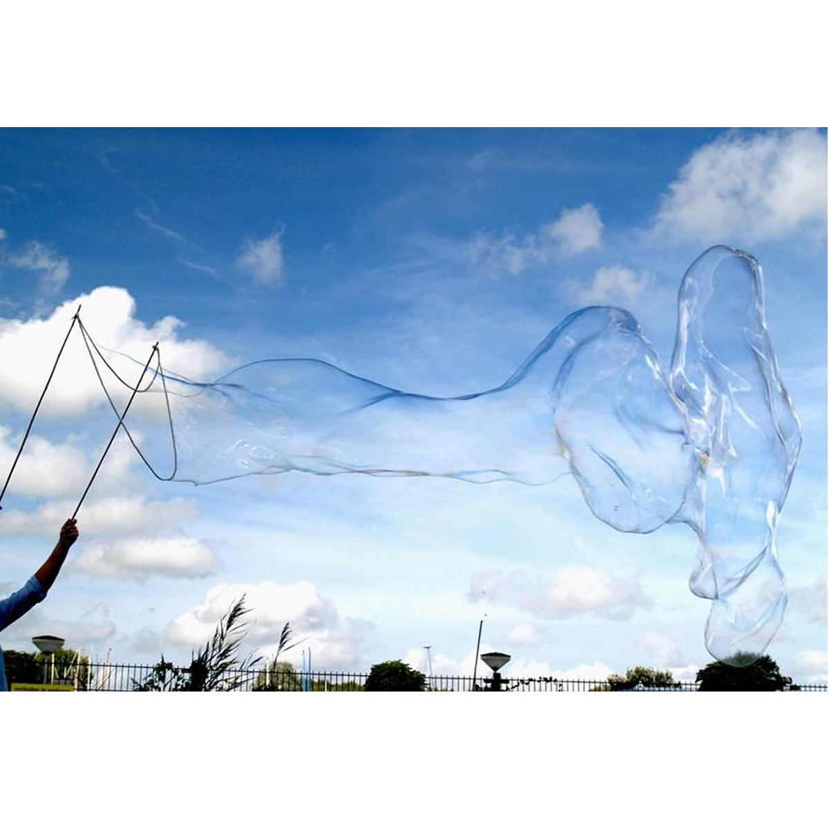 Pewnie nieraz widzieliście zachwyt na buziach Waszych dzieci, gdy podczas jakiegoś festiwalu czy innej większej uroczystości miejskiej, osoby specjalnie przeszkolone wykonywały ciekawy pokaz wytwarzania gigantycznych baniek. Teraz umożliwiamy Wam wykonanie takiej atrakcji w rodzinnym gronie. Jedyne, co będzie do tego potrzebne, to zestaw BuubleLab, woda oraz płyn do mycia naczyń.
