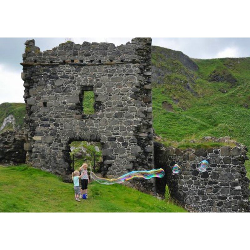 Pewnie nieraz widzieliście zachwyt na buziach Waszych Pociech, gdy podczas jakiegoś festiwalu czy innej większej uroczystości miejskiej, osoby specjalnie przeszkolone wykonywały ciekawy pokaz wytwarzania gigantycznych baniek. Teraz umożliwiamy Państwu wykonanie takiej atrakcji w gronie rodzinnym, znajomych etc. Będzie do tego potrzebny: zestaw BuubleLab, 4,5 litra wody oraz płyn do mycia naczyń...no i możemy przystępować do działania!