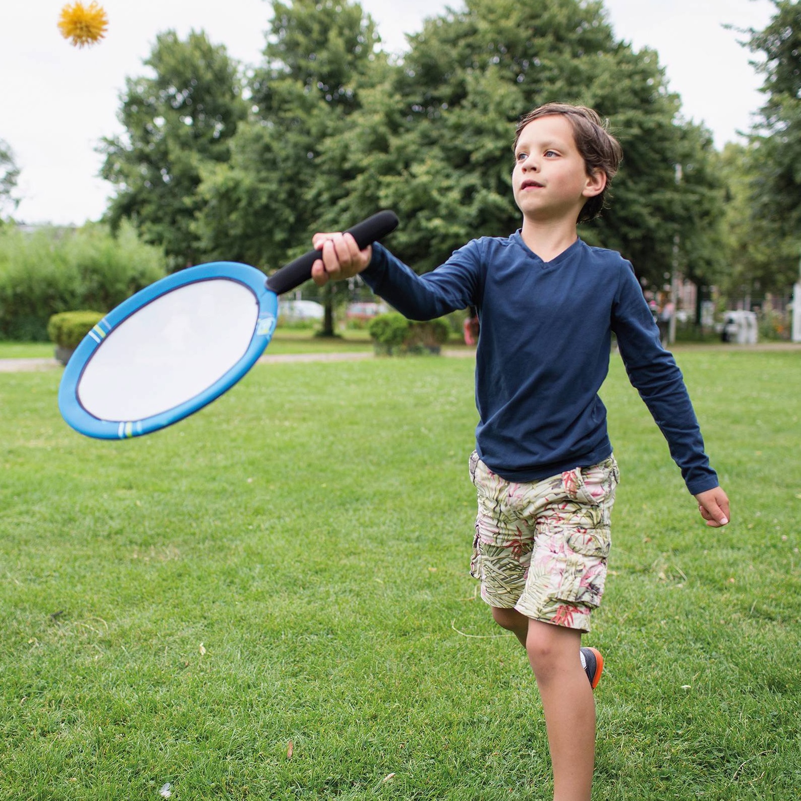 Rakietki są lekkie oraz mają ergonomiczny kształt i solidną konstrukcję, dzięki czemu są trwałe i wytrzymałe. Piłeczka jest miękka i delikatna, co minimalizuje ryzyko urazów podczas gry.