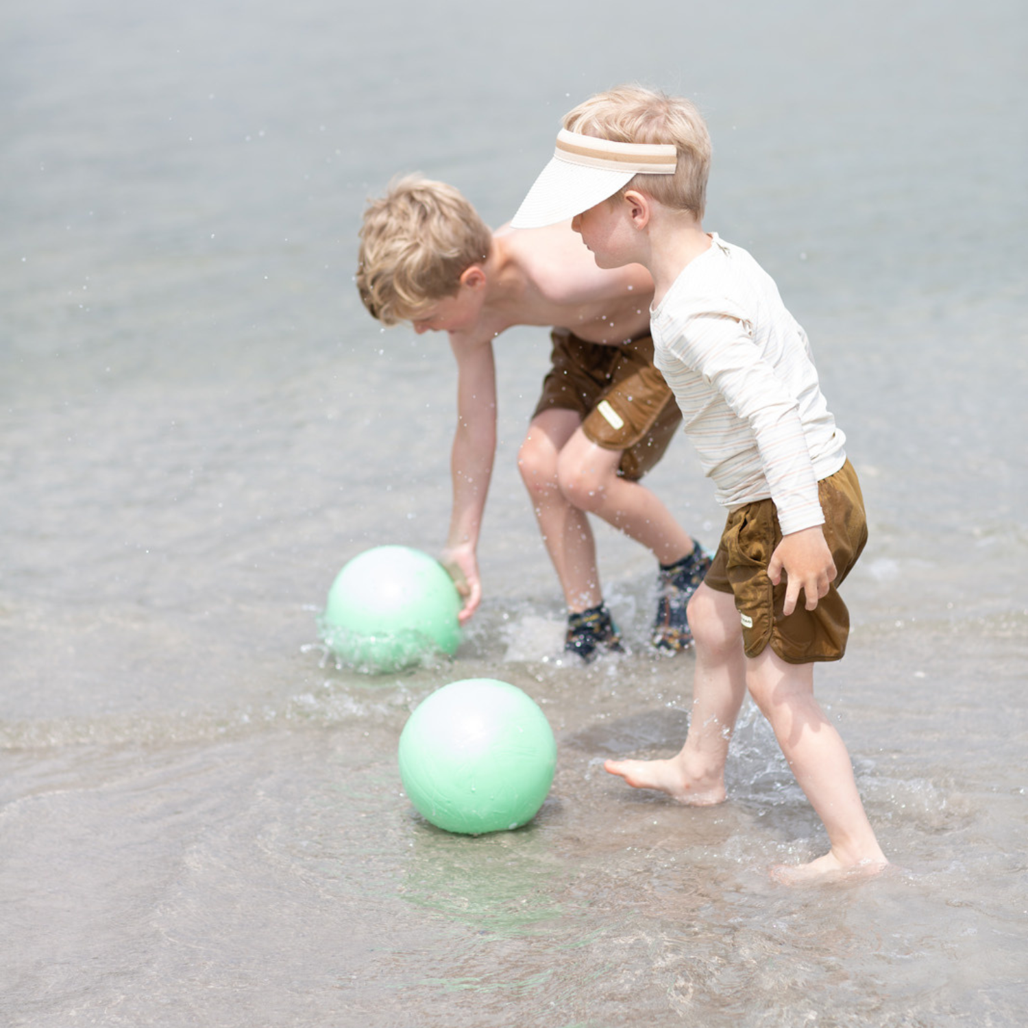 Jakości tej marki nie trzeba przedstawiać, gruba i solidna guma, nie przebije się tak łatwo. Patent z wyciaganym korkiem to life hack rodziców - zwijasz piłkę i ląduje w nawet małym plecaku, zmieści się do średniej wielkości nerki co czyni ją super do zabrania na spacer do parku, piknik na rowerze czy jak w naszym przypadku nad wodę. Gruba guma zapewnia także lepszą zabawe podczas wiatru gdyż piłka nie jest lekka jak inne gumowe piłki, ale wystarczająco lekka aby mogło nią bawić się nawet 2 letnie dziecko.