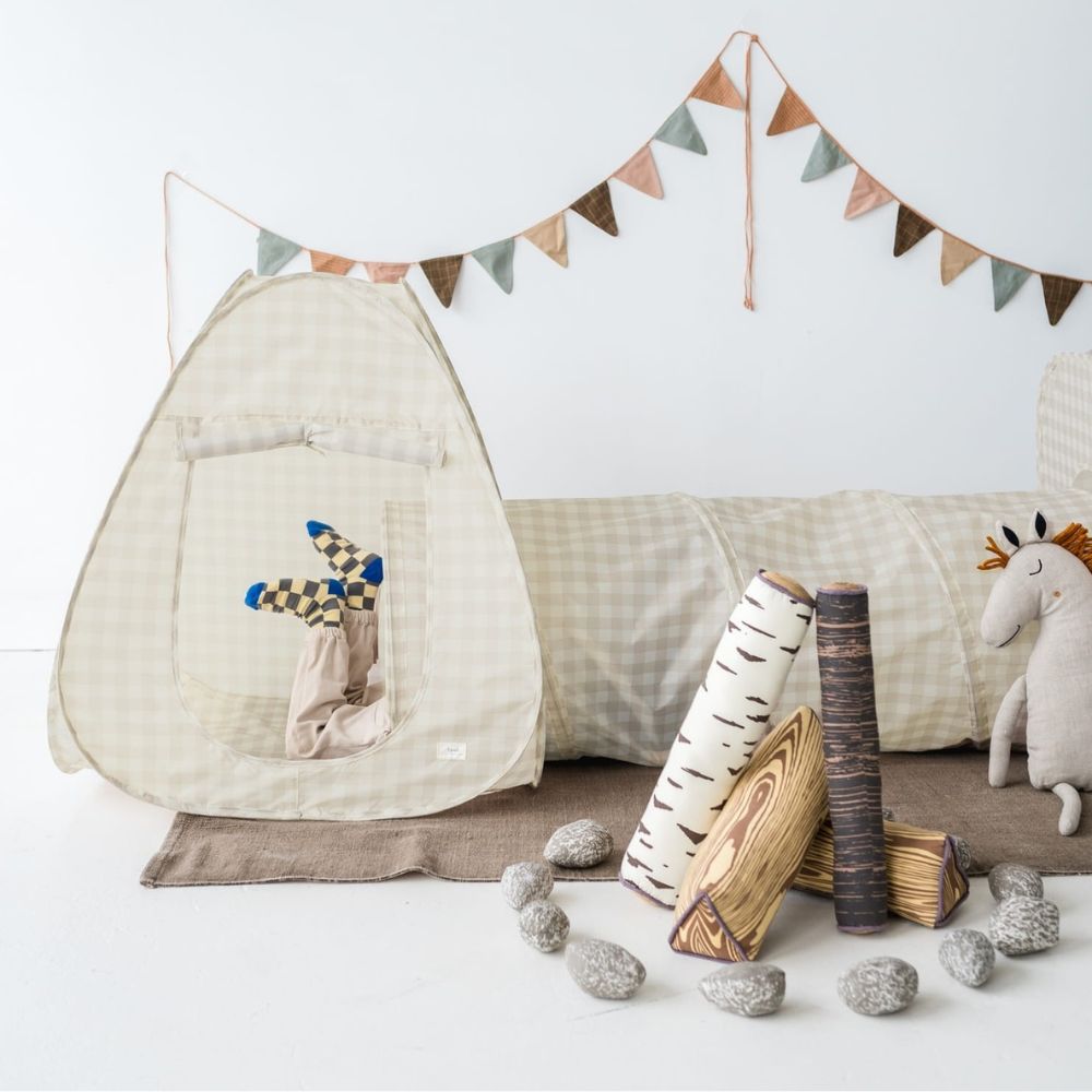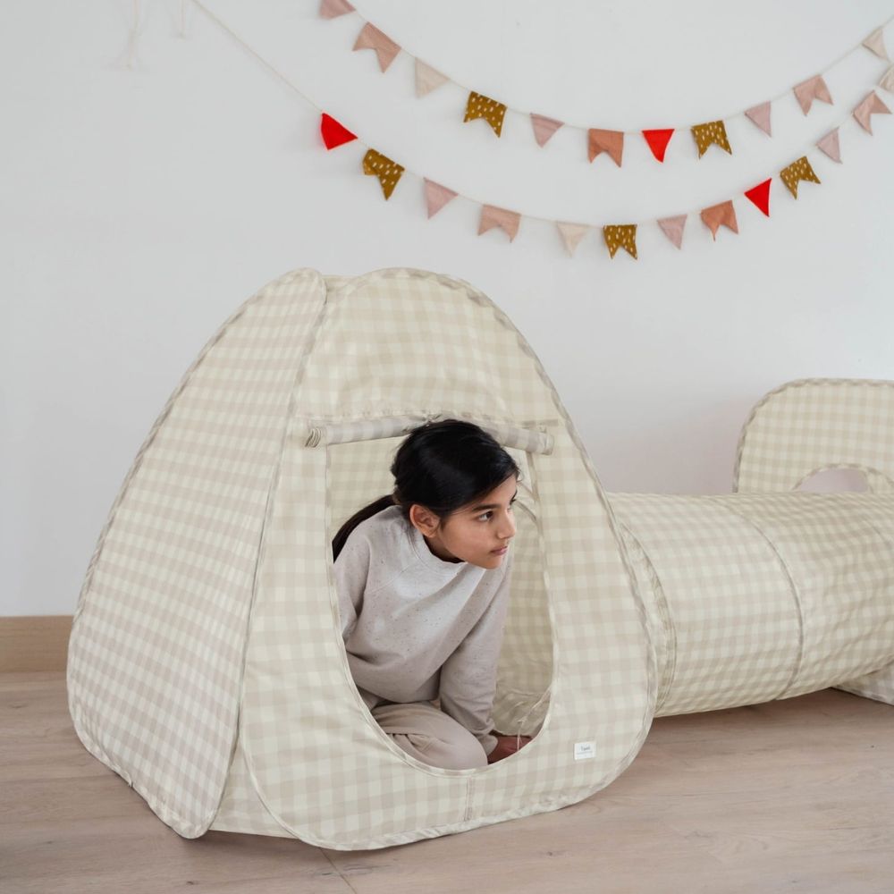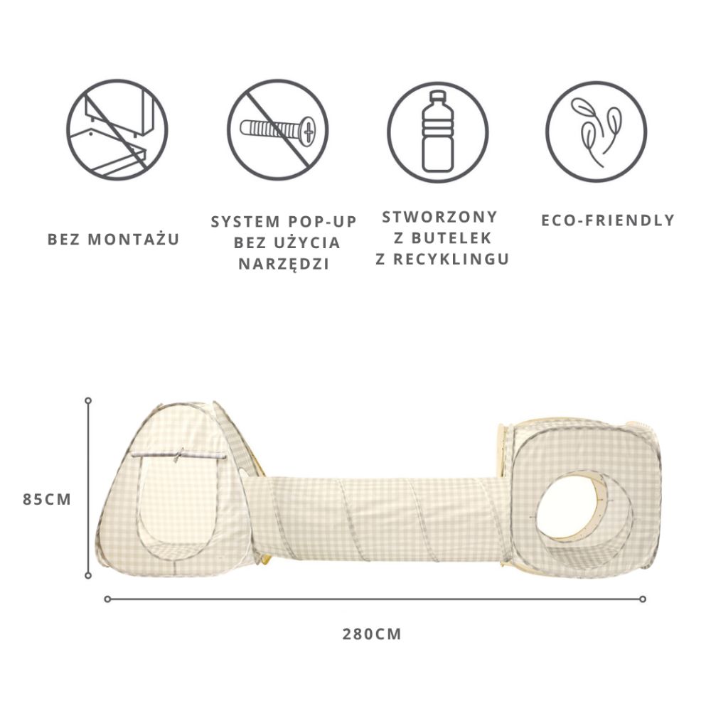 Cechy Zestawu Namiotów dla Dzieci z Tunelem 3w1 Gingham Beige 3 Sprouts: