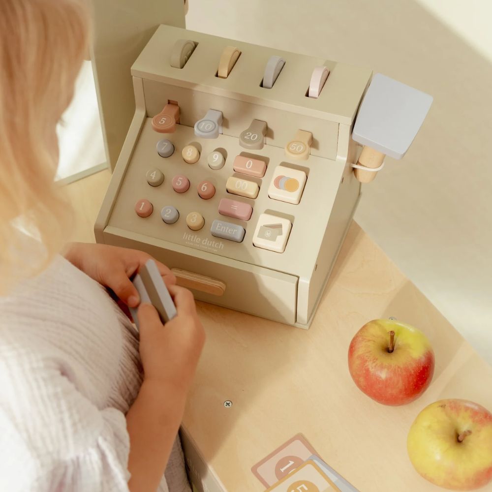 Cechy Drewnianej kasy sklepowej Little Dutch: