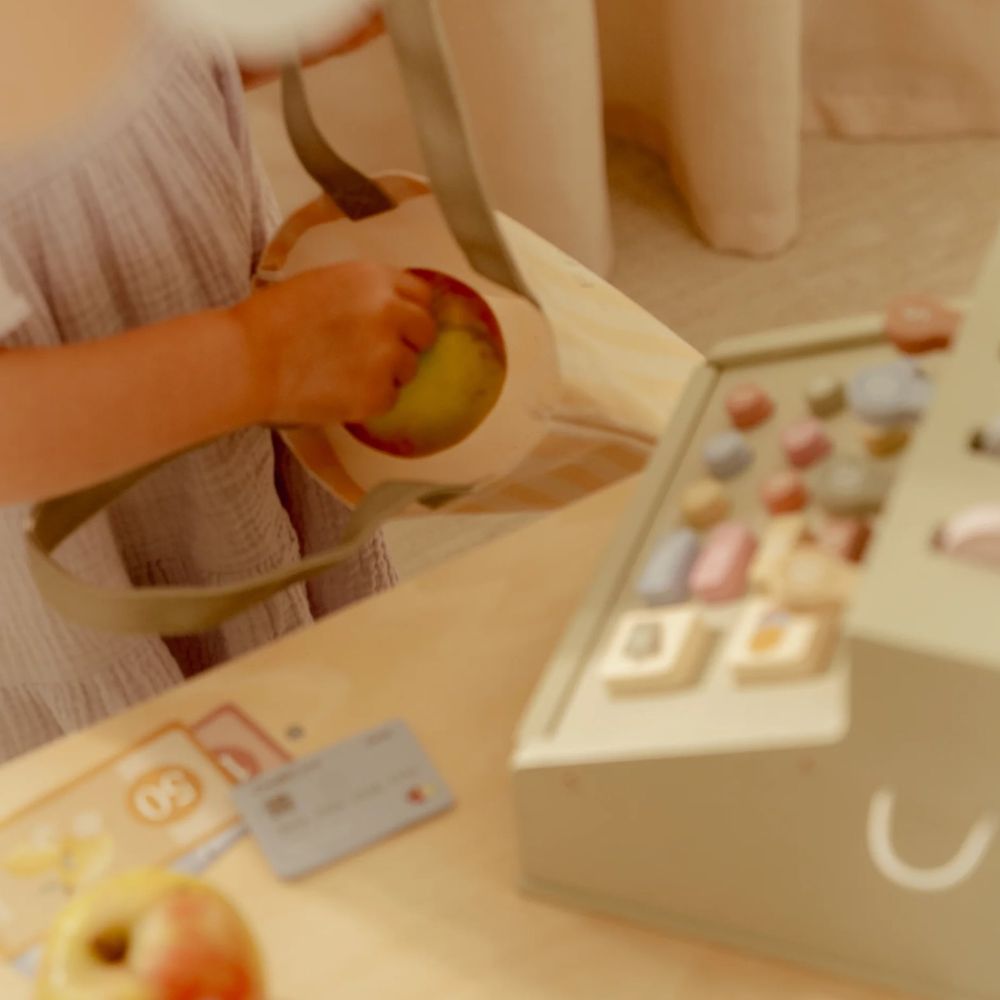 Drewniana kasa to nowa odsłona bestsellera, który od lat cieszy się uznaniem zarówno dzieci, jak i rodziców. To idealny zestaw do zabawy w sklep – wyposażony w terminal, monety i banknoty, które można przechowywać w szufladzie kasowej. Dzięki niej maluch może poczuć się jak prawdziwy sprzedawca i wcielić się w rolę kasjera podczas zabawy z rodzicami, przyjaciółmi czy ulubioną lalką.