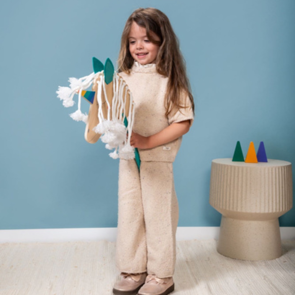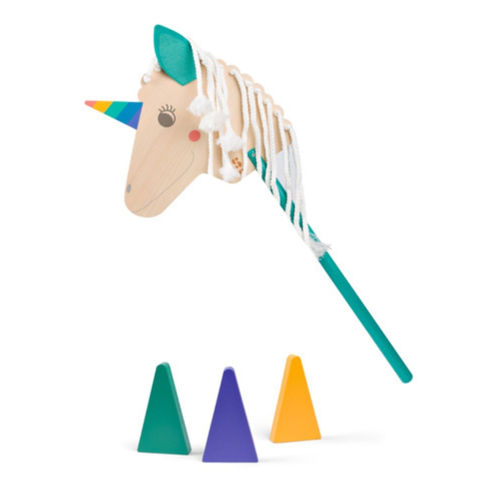 Jednorożec został wykonany z naturalnego drewna oraz miękkiej bawełny, dzięki czemu jest przyjemny w dotyku, bezpieczny i trwały.