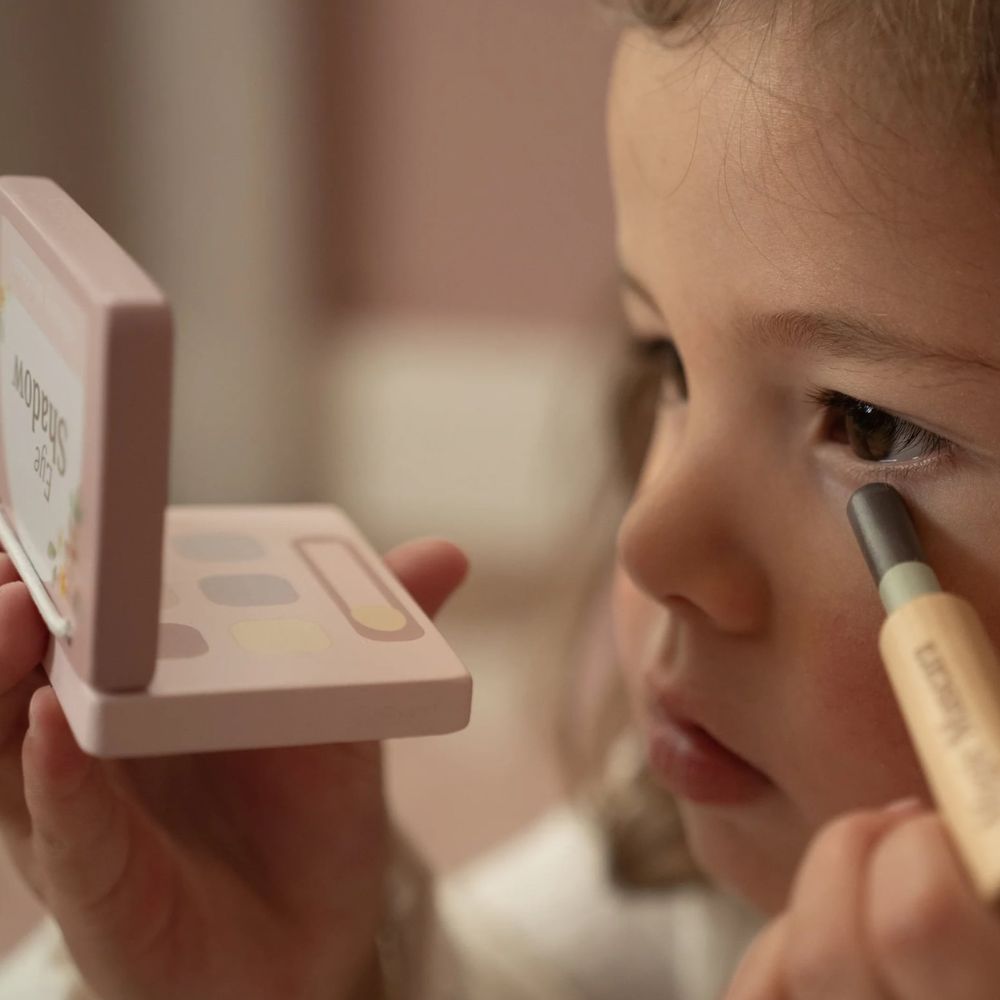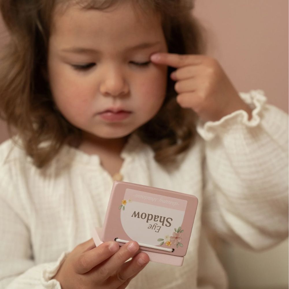 Małe dziewczynki uwielbiają naśladować dorosłych, a ta piękna kosmetyczka od Little Dutch pozwoli im poczuć się jak prawdziwe stylistki! W kolorowej, kwiatowej torbie kryje się aż 10 drewnianych akcesoriów do makijażu, które zachęcają do twórczej i bezpiecznej zabawy. Dzięki nim Twoje dziecko może wcielić się w rolę makijażystki, rozwijać wyobraźnię, zdolności manualne oraz odgrywać różne scenki.