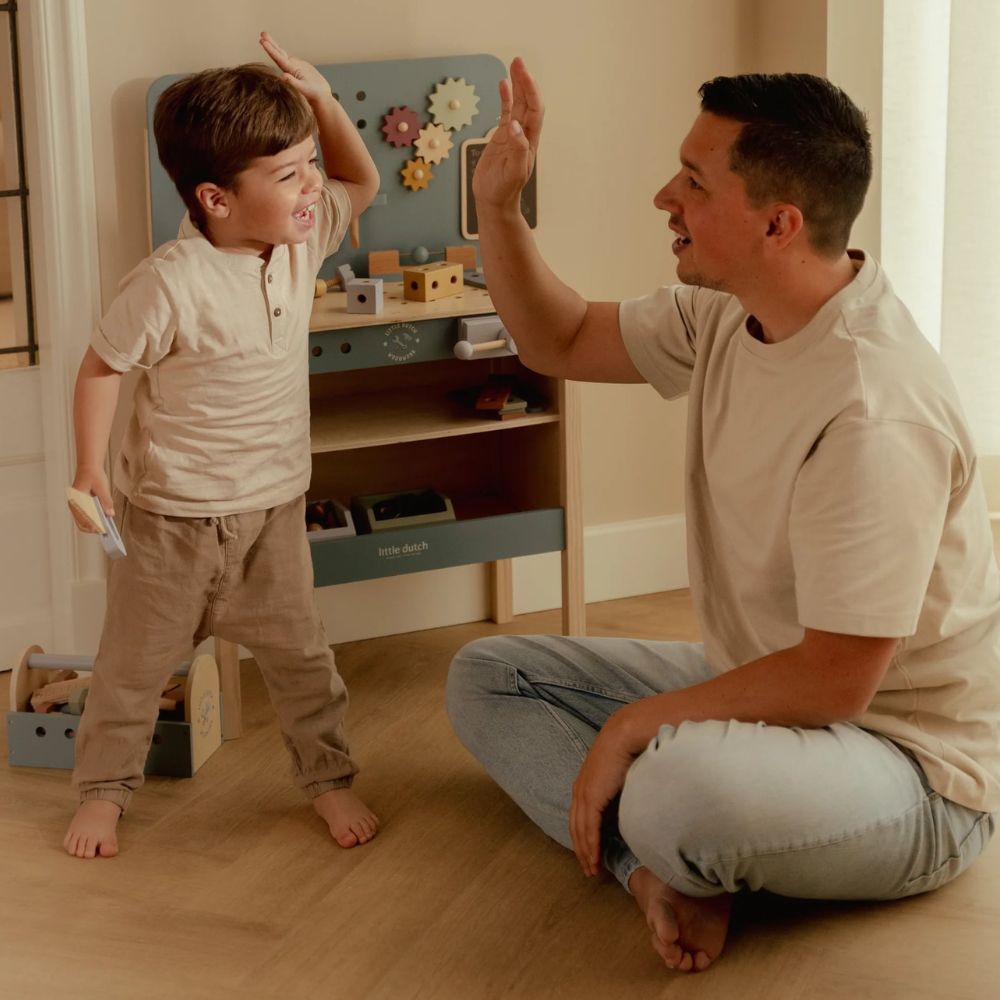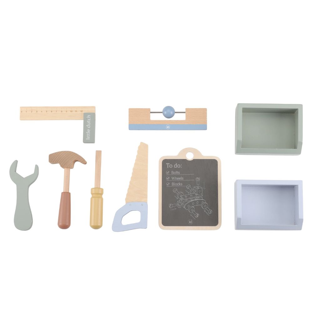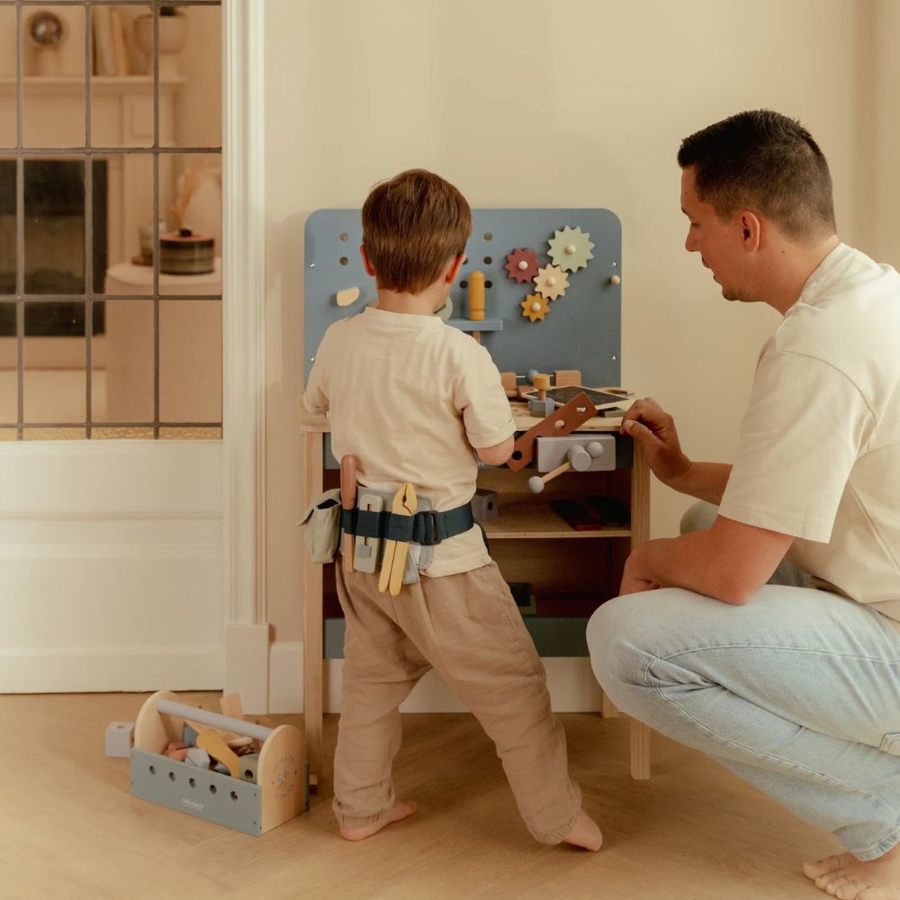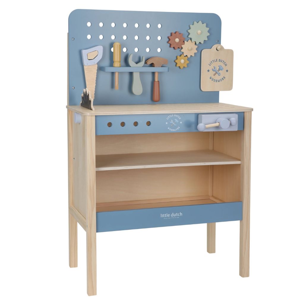 Drewniany warsztat z narzędziami Little Dutch to wymarzona zabawka dla każdego małego majsterkowicza! Dzięki niemu dzieci mogą naprawiać, konstruować i wymyślać własne projekty, rozwijając przy tym zdolności manualne oraz wyobraźnię. To świetny pomysł na prezent dla 3-latka, który pokocha skręcanie, piłowanie i budowanie. Warsztat utrzymany jest w nowej, pastelowej kolorystyce, charakterystycznej dla marki Little Dutch, i wykonany z drewna z certyfikatem FSC – bezpiecznego i ekologicznego materiału.