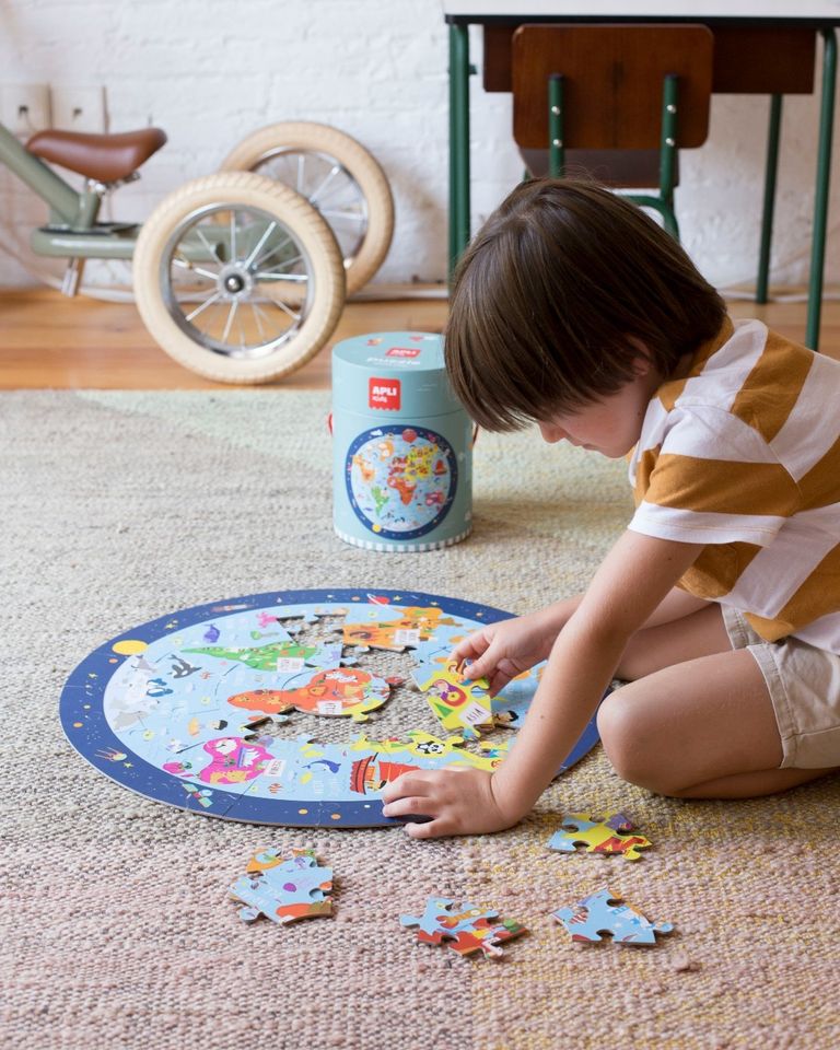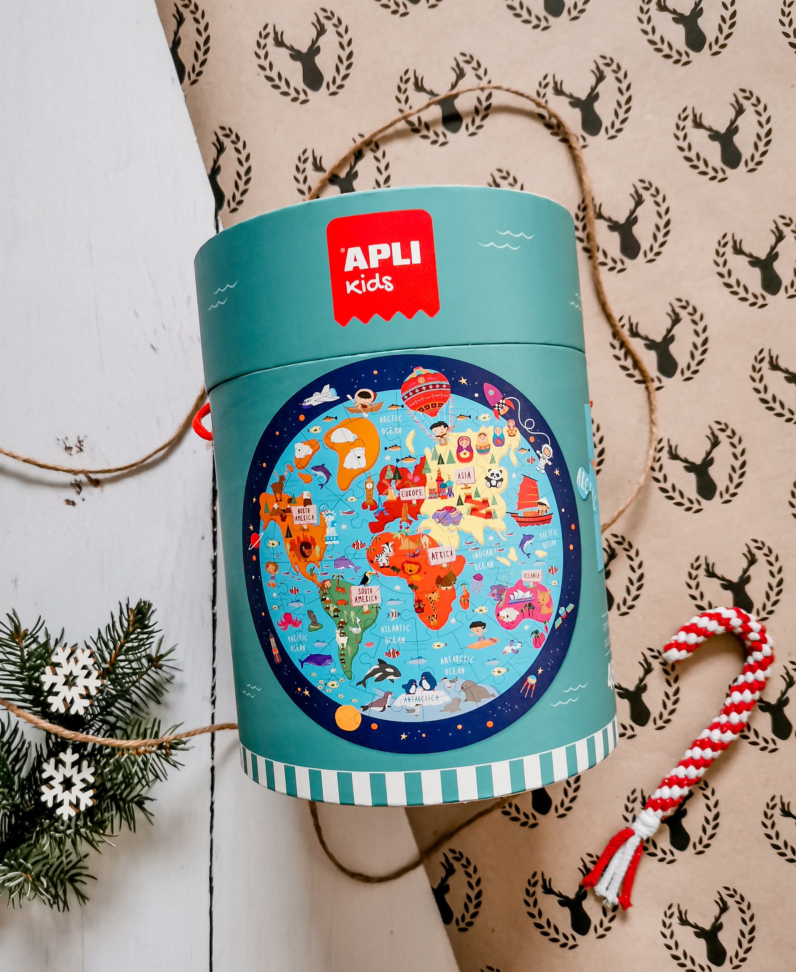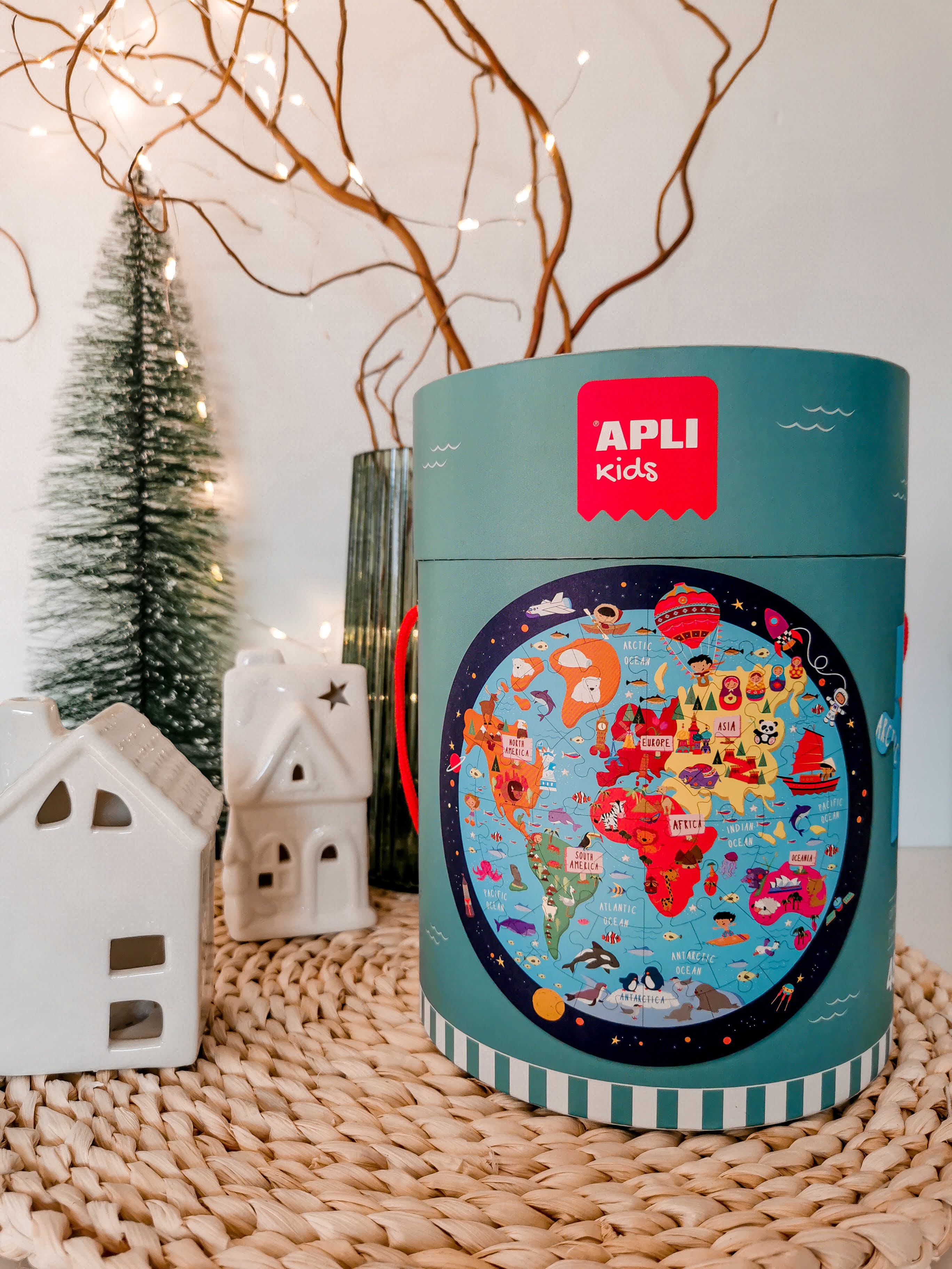 Puzzle w tubie Apli Kids spodobają się każdemu małemu odkrywcy. Układanka składa się z 48 elementów, które po ułożeniu przedstawiają okrągłą mapę świata. Dzieci podczas zabawy odkryją kontynenty, oceany oraz zwierzęta występujące na naszej planecie. Do zestawu w celu ułatwienia układania puzzli dołączony jest rzeczywistych rozmiarów plakat z obrazkiem. Kolorowa, wesoła grafika zachęci do zabawy. Puzzle zapakowane w trwałe, kartonowe pudełko z rączką ułatwiającą przenoszenie, idealnie sprawdzą się na prezent.