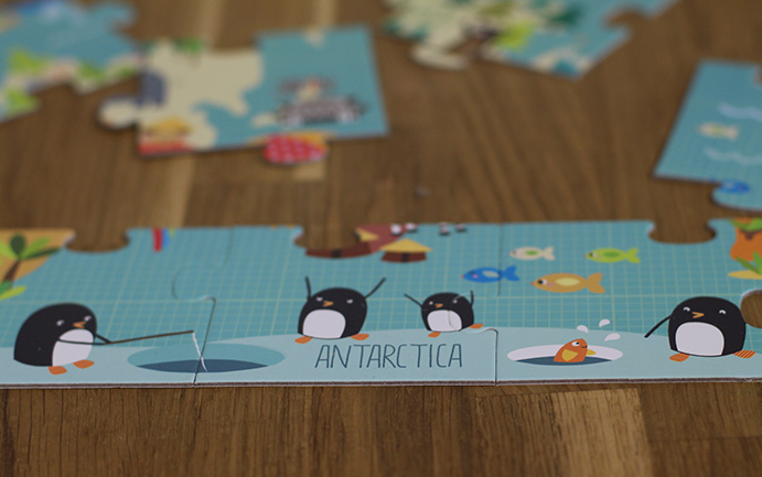 Układanie puzzli przez dzieci ma ogromne walory edukacyjne. Maluch podczas zabawy ćwiczy pamięć, koncentrację, rozwija zdolności wzrokowe oraz przestrzenne. Puzzle XL Apli Kids doskonale łączą naukę z zabawą. Zadaniem malucha jest ułożenie mapy świata z 24 dużych elementów puzzli. Podczas zabawy dziecko poznaje kontynenty, państwa, budowle, roślinność, zwierzęta i wiele innych. Duże, wykonane z grubego kartonu puzzle idealnie mieszczą się w dziecięcej dłoni. Kolorowa, wesoła grafika została zaprojektowana przez Martine Hogan. Zapakowane w trwałe, metalowe pudełko. Idealnie sprawdzą się na prezent.