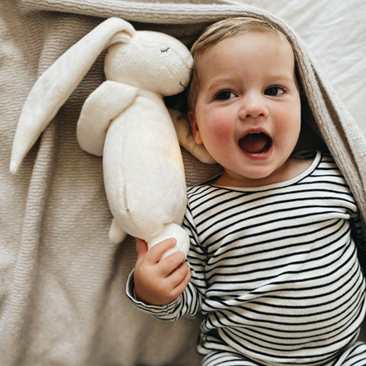 Króliczek MOONIE jest niezwykłym pierwszym przyjacielem Twojego maluszka, a także Twoim ponieważ profesjonalnie pomaga w usypianiu. Korzysta przy tym z różowych szumów, które są bezpiecznym i naturalnym dźwiękiem. W brzuszku króliczka znajduje się lampka, emituje światło w siedmiu różnych kolorach. Światło uruchamia się wraz z dźwiękiem, uspakajając maluszka i służąc pomocą opiekunowi. Lampka z powodzeniem będzie też towarzyszyć większemu dziecku, gdyż można ją uruchomić bez dźwięku, nawet na całą noc. Lampka LED jest bezpieczna ponieważ nie nagrzewa się. Zabawka wyposażona jest w czujnik płaczu i ładuje się wygodnie przez USB. Dzięki wielu funkcjom, to obowiązkowy element każdej wyprawki. Stylowe opakowanie sprawia, że szumiący królik z lampką Moonie w kolorze Cream świetnie sprawdzi się jako prezent.