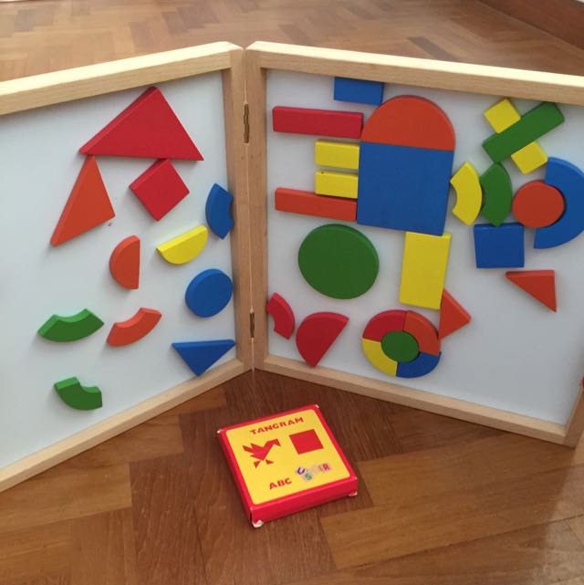 Świetna układanka uczy kształtów, rozpoznawania kolorów, odwzorowywania, pobudza wyobraźnię i inwencję dziecka. Sprawdza się w podróży, przez to, że klocki są na magnesy - nie gubią się. Walizeczka i klocki bardzo estetycznie wykonane. Polecam.