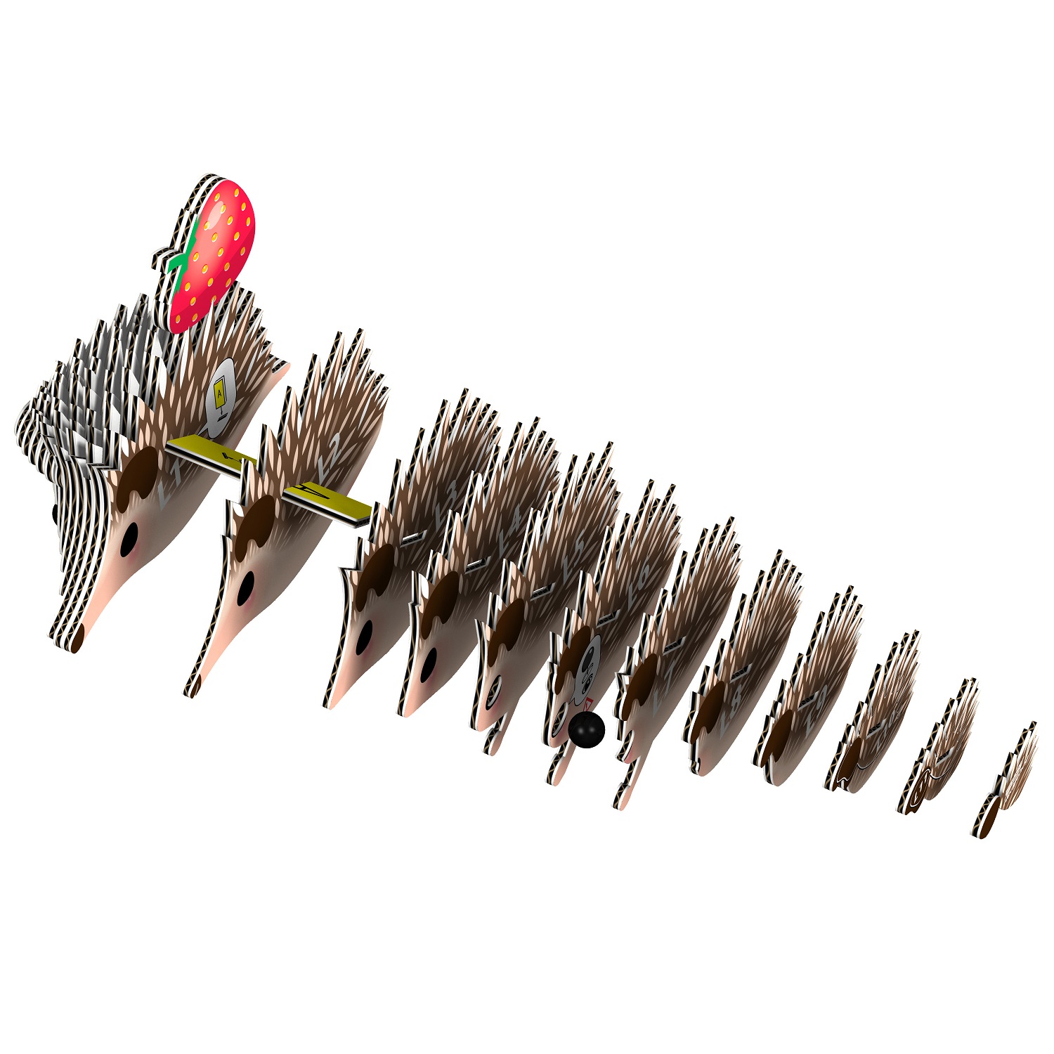 Eugy zaprojektowane w Nowej Zelandii są wykonane z przyjaznego dla środowiska kartonu pochodzącego z recyklingu i farby na bazie ryżu. Zestaw zawiera ponumerowane elementy układanki, nietoksyczny klej oraz instrukcję do zbudowania jeża. Zbierz całą serię zwierząt, ptaków, dinozaurów i wiele innych. Dla dzieci w wieku 6 lat+.