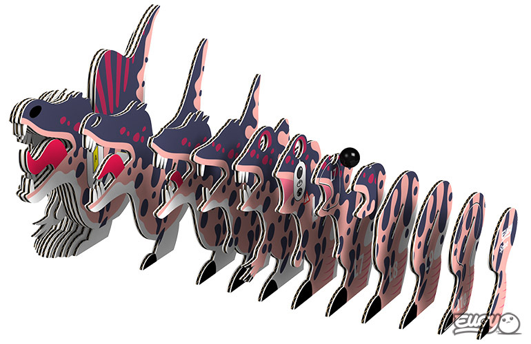 Spinozaur Eugy odzwierciedla charakterystyczne cechy tego dinozaura jak grzebień na grzbiecie zwany "żaglem". Dinozaur Eugy ma otwartą szczękę, ostre zęby i pazury aby pokazać, że był on drapieżnikiem.