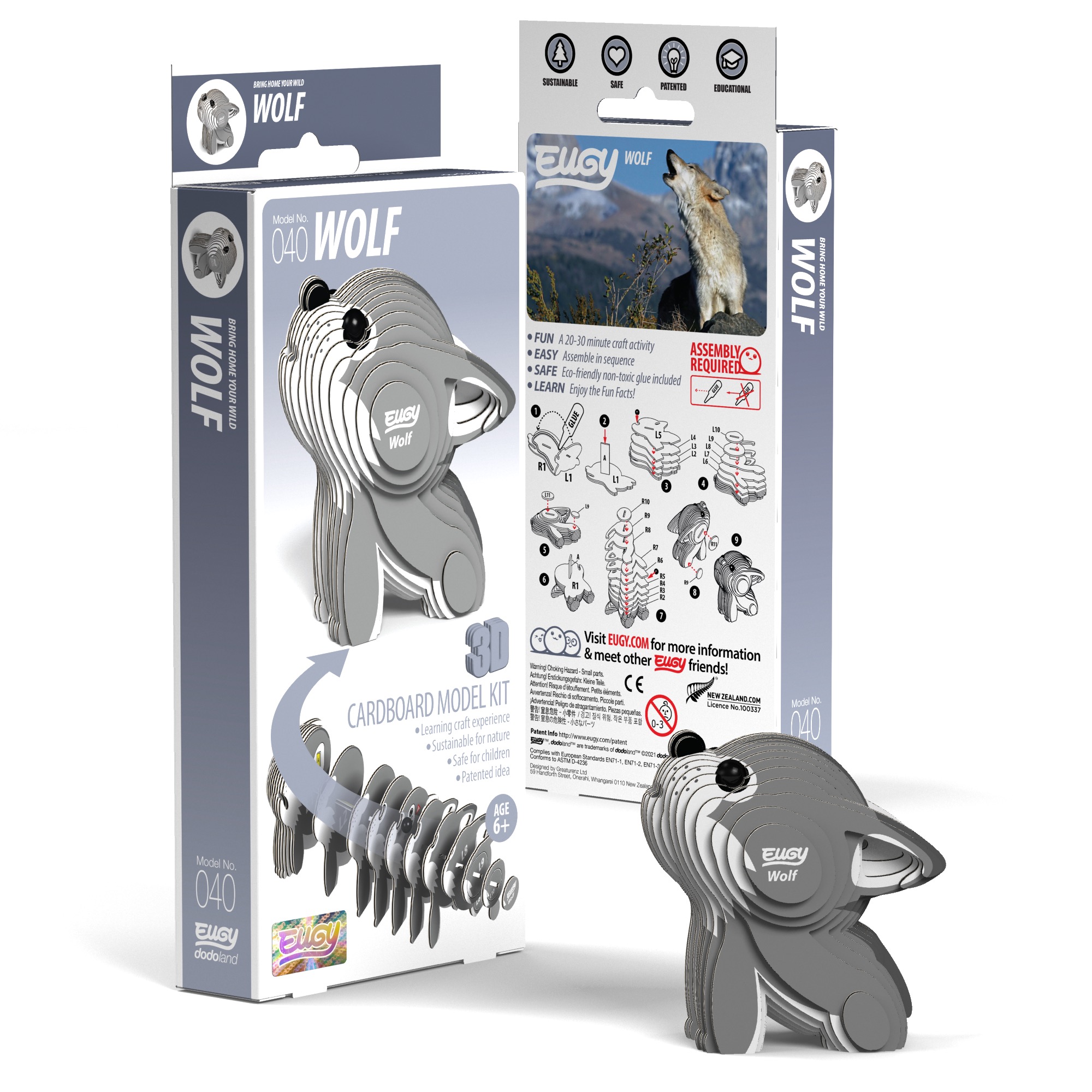 Eugy zaprojektowane w Nowej Zelandii są wykonane z przyjaznego dla środowiska kartonu pochodzącego z recyklingu i farby na bazie ryżu. Zestaw zawiera ponumerowane elementy układanki, nietoksyczny klej oraz instrukcję do zbudowania wilczka. Zbierz całą serię zwierząt, ptaków, dinozaurów i wiele innych. Dla dzieci w wieku 6 lat+.