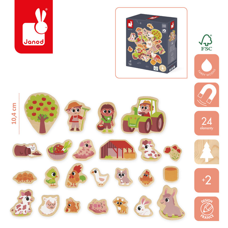 Cechy Zestawu drewnianych magnesów Na farmie Janod:
