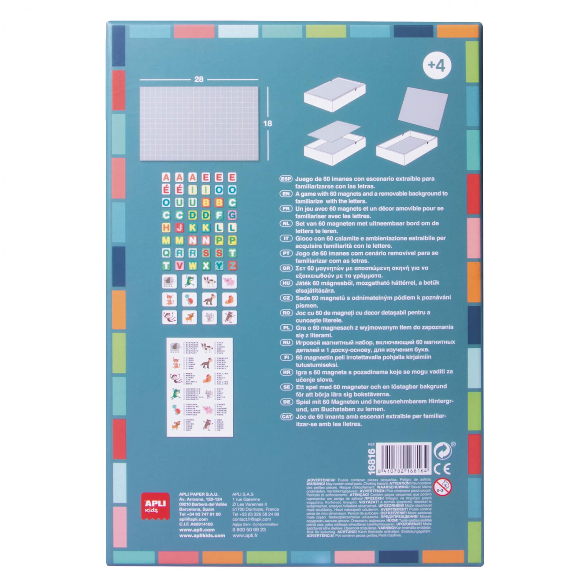 Zestaw składa się z magnetycznej tablicy oraz 60 magnetycznych elementów z literami i obrazkami zwierząt, co umożliwia dziecku nie tylko zabawę w formułowianie słów, ale także naukę nazw zwierząt w aż 6 językach. Układanka pozwoli również młodszym dzieciom na przyswojenie alfabetu. Trwałe i estetyczne pudełko z planszą do układania magnesów, która mieści się w podstawie pudełka, sprawiają, że zestaw jest idealny na prezent i do zabawy w podróży. Poznaj świat liter z zestawem Litery od Apli Kids!