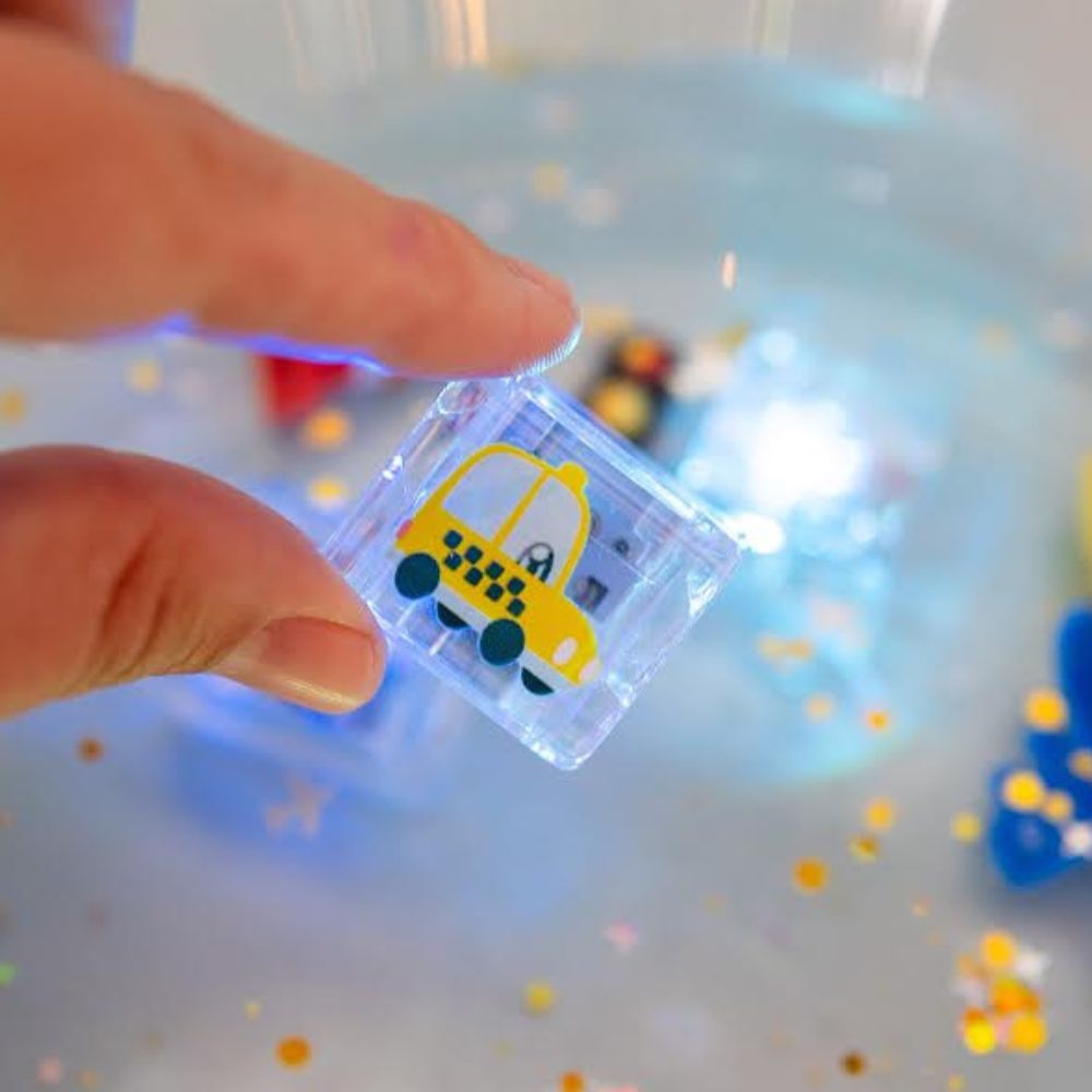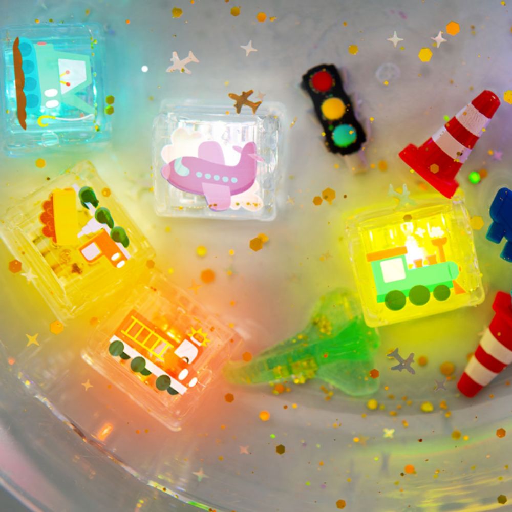 Kostki sensoryczne świecące w wodzie w wersji: Pojazdy 6 szt.