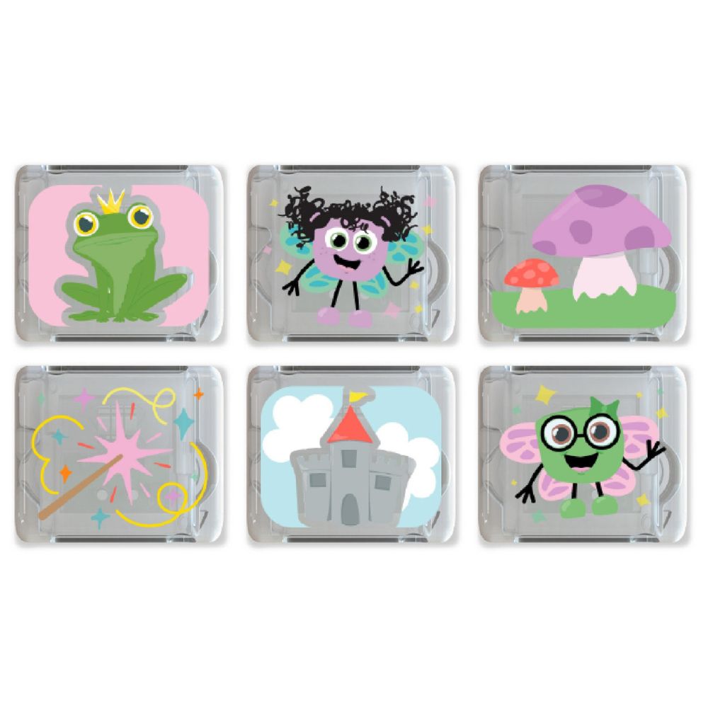 Wyrusz w magiczną podróż do świata rodem z bajki! Na każdej kostce czeka inny czarujący motyw – od uśmiechniętych wróżek, przez lśniący zamek ukryty wśród chmur, aż po migoczącą różdżkę, która potrafi odmienić każde zaklęcie w niezwykłą przygodę. To idealny zestaw dla dzieci kochających baśniowy klimat i kreatywną zabawę.