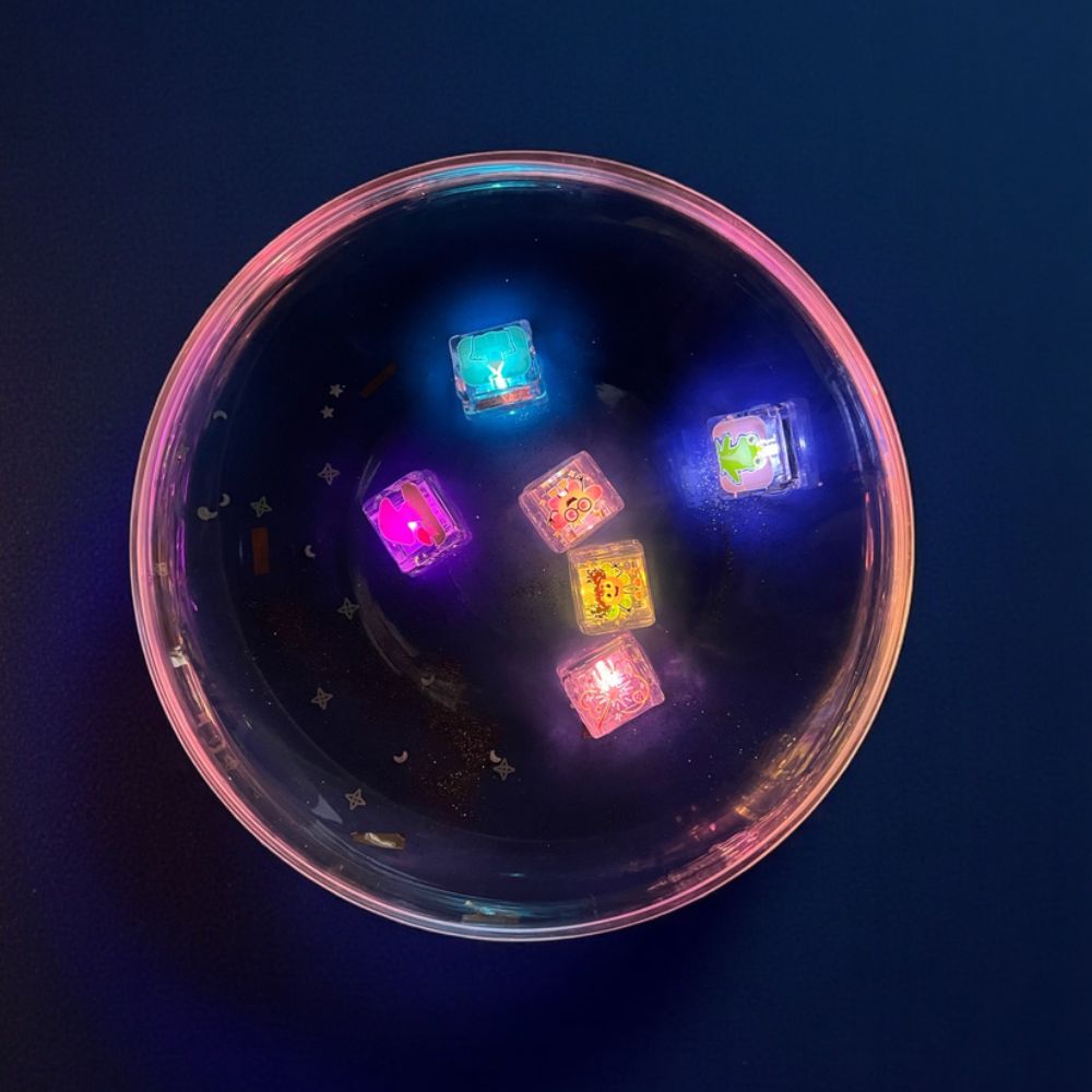 Dzięki świecącym kostką możesz zrobić lampion. Wystarczy, że weźmiesz słoik, wlejesz wody i umieścisz kolorowe kostki. Poruszaj słoikiem i obserwuj jak zmienia się światło.