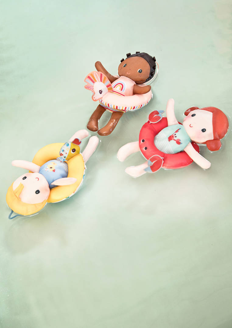 Laleczka z kołem pływackim Gaspard belgijskiej marki Lilliputiens to idealna zabawka do kąpieli. Wykonana z miękkiego, łatwego do czyszczenia i szybkoschnącego materiału. Ma postać małego chłopca z blond fryzurką z zabawną grzywką, w jednoczęściowym stroju z podobizną Kaczorka Gasparda oraz kołem do pływania, zdobionym główką tego kaczorka. Zabawka jest perfekcyjnie wykończona, z dbałością o każdy szczegół i w pełni bezpieczna dla dziecka. Umila czas spędzony w wannie, a przy okazji rozwija sprawność motoryczną (chwyt, wkładanie i wyjmowanie laleczki z koła) oraz wyobraźnię (snucie opowieści).