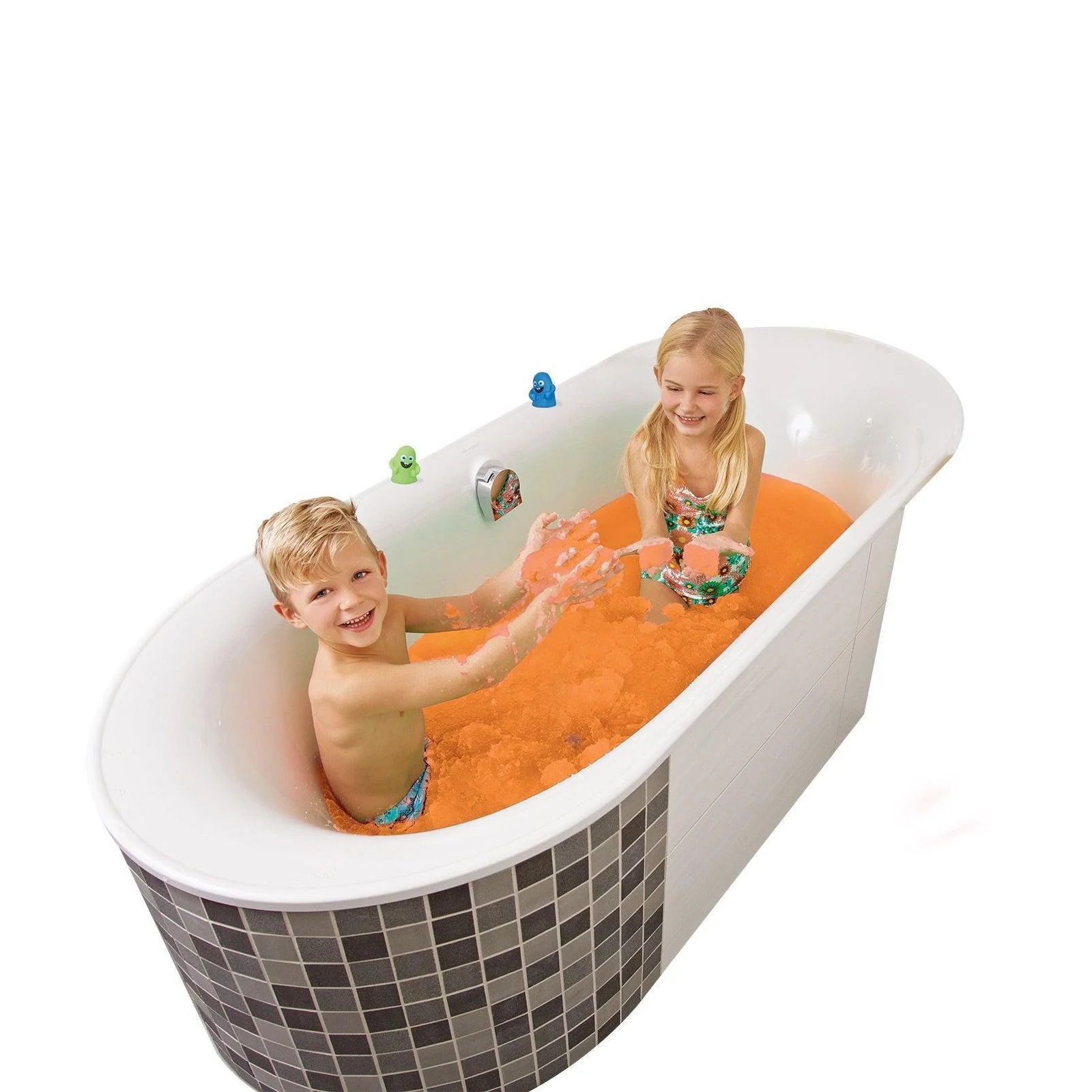 Całkowicie unikalny, zabawny produkt do kąpieli, który w moment zamienia wodę w wannie w różowy, błyszczący żel, przyjazny dla środowiska. Dodając proszek Gelli Baff Glitter do wody, tworzysz gęstą substancję o kolorach przyciągających wzrok i nęcącą teksturą. To prawdziwie magiczny produkt, wprost stworzony do aktywności pobudzającej wszystkie zmysły dziecka. Ale na sensorycznej przygodzie zabawa wcale się nie kończy. Kolejną atrakcją jest dodanie drugiego, rozpuszczający proszku. Ten, również w fascynujący sposób zamieni żel w kolorową wodę, gotową do spuszczenia.