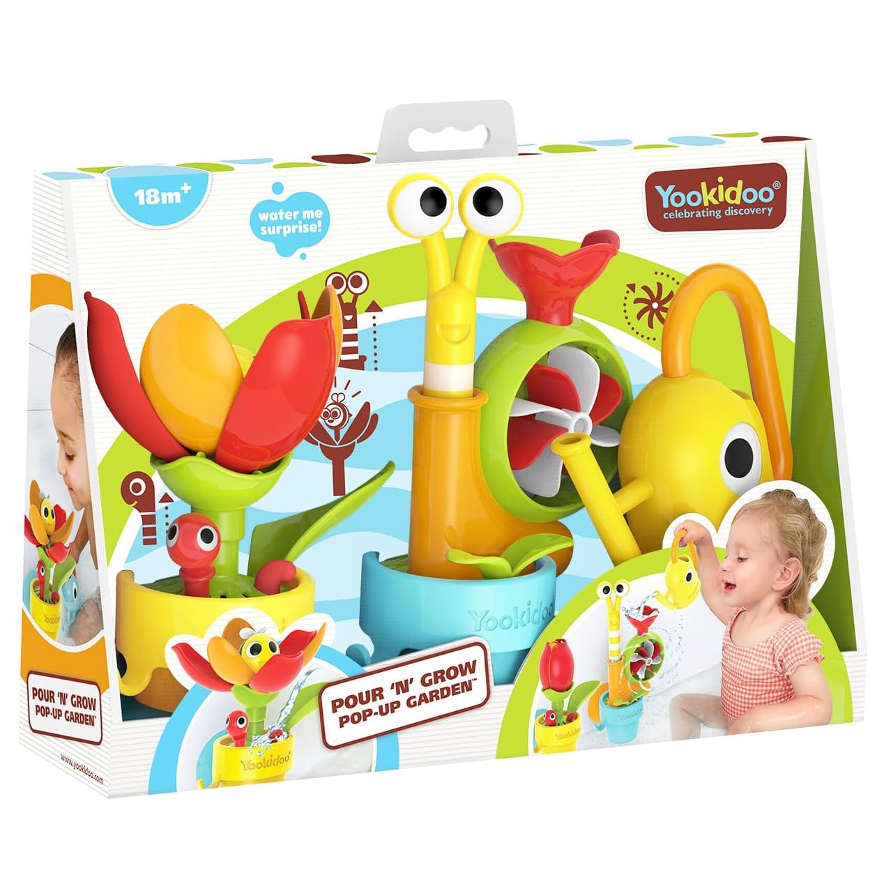Zestaw do kąpieli o tematyce ogrodowej - dwie doniczki i konewka. Jedna doniczka z wyskakującym ślimakiem oraz skorupką, która się kręci. W drugiej doniczce znajduje się robaczek oraz kwiatek, w którym kryje się pszczółka. Idealny zestaw pełen stymulujących, zaskakujących reakcji.