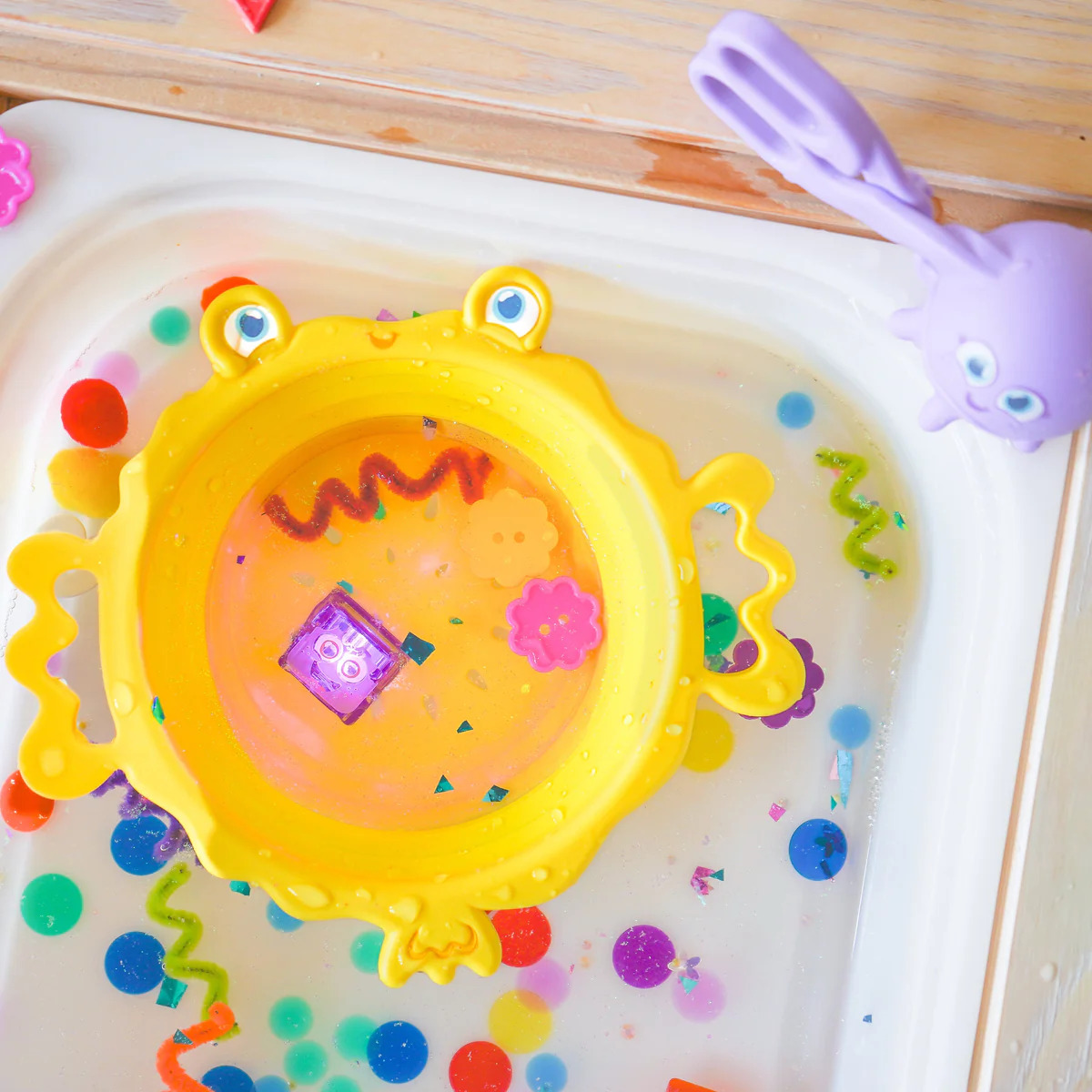 Zabawka będzie świetnym uzupełnieniem do innych zabawek marki Glo Pals jak słoiki sensoryczne czy świecące w wodzie kostki.