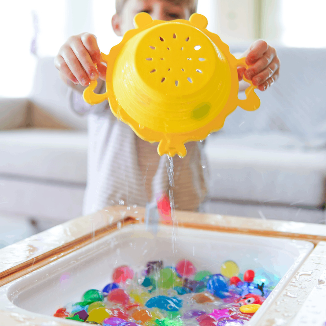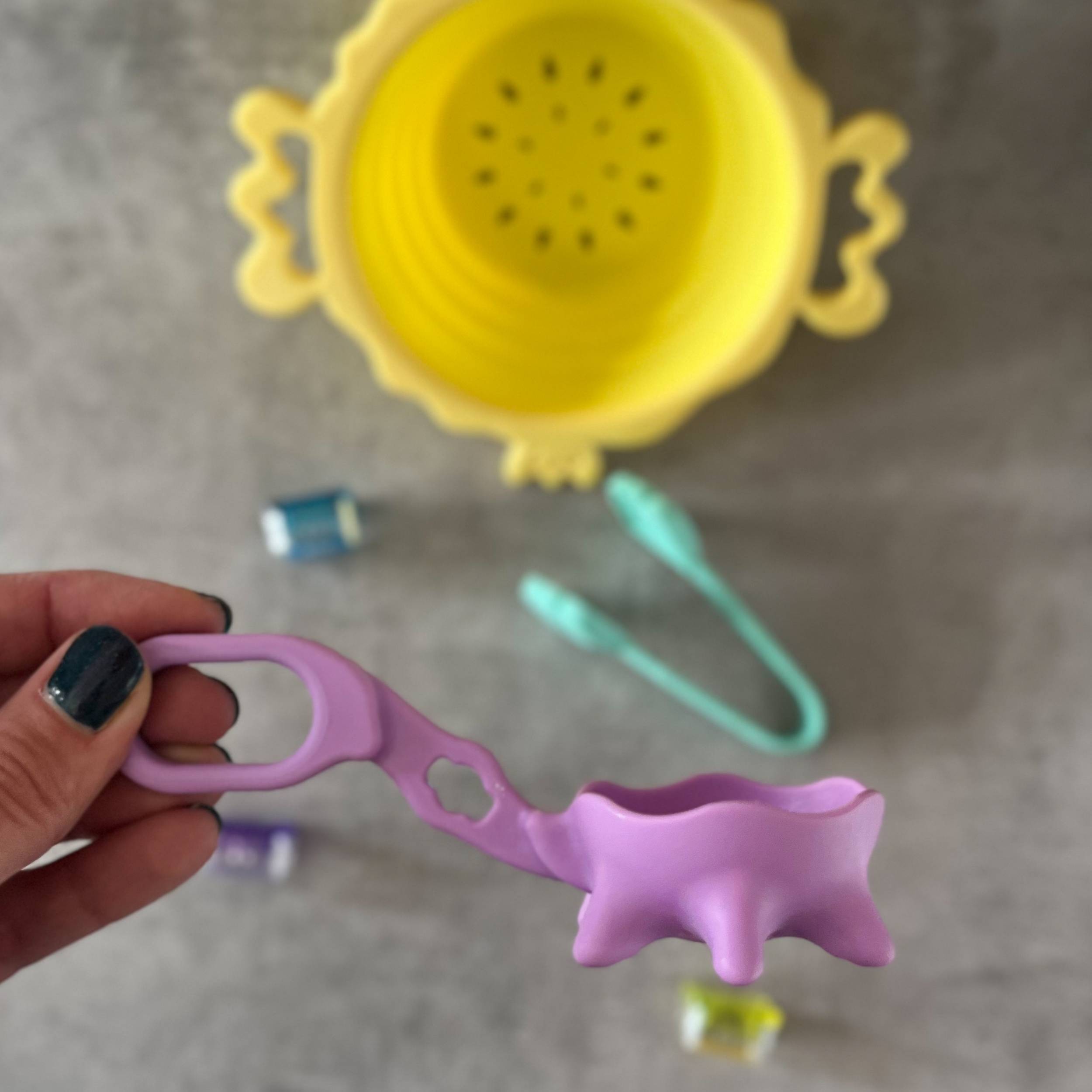 Idealny zestaw akcesoriów sensorycznych do chwytania, przenoszenia, sortowania, przesiewania i przekładania! 3 akcesoria a tak wiele zastosowań!