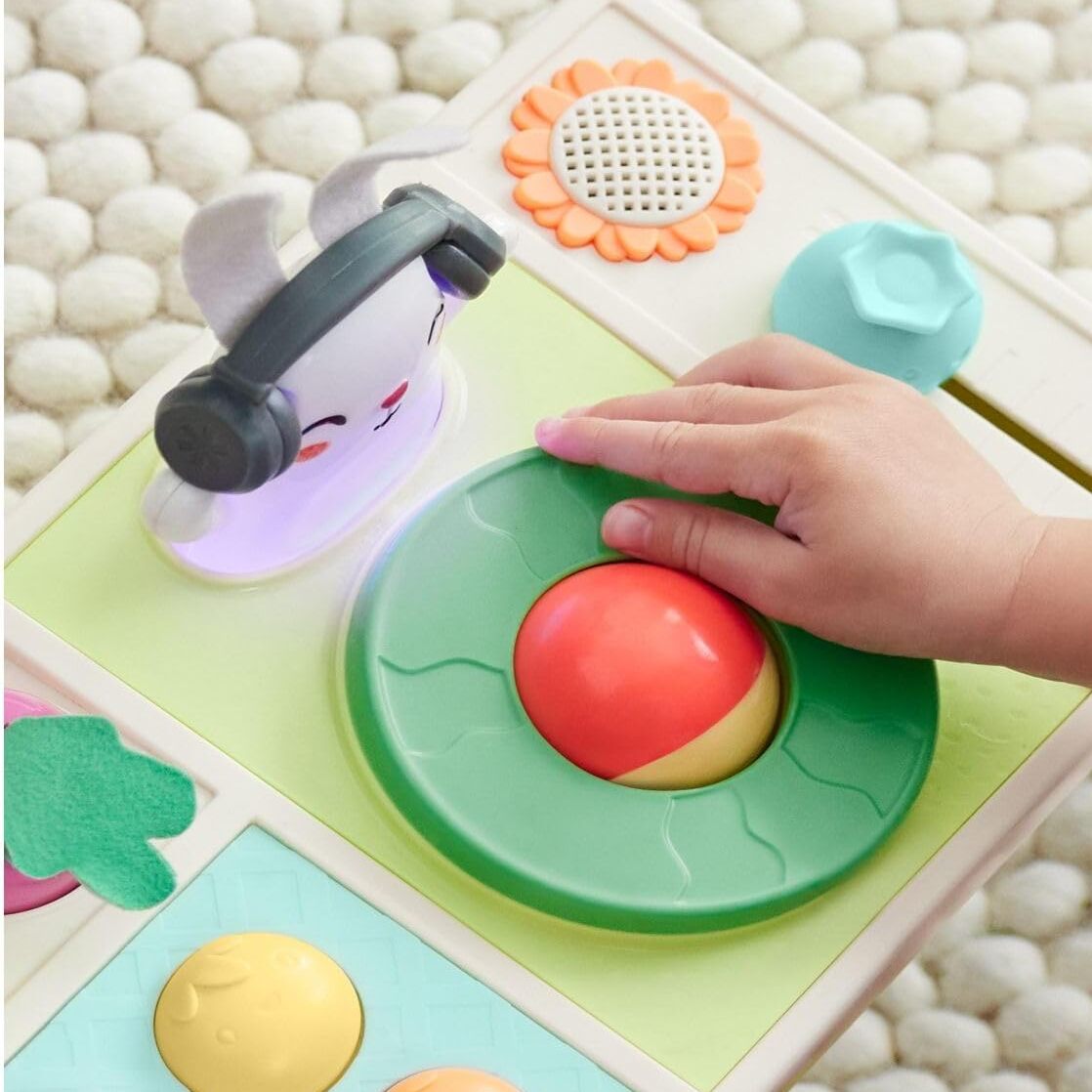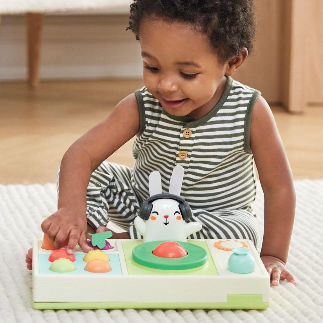 Wyposażona w ponad 30 funkcji, w tym podświetlanego króliczka DJ-a, piosenki, dźwięki i nie tylko, ta muzyczna zabawka dla dziecka rozkręci imprezę, jednocześnie zachęcając do rozwijania umiejętności motorycznych, koordynacji ręka-oko i innych umiejętności.