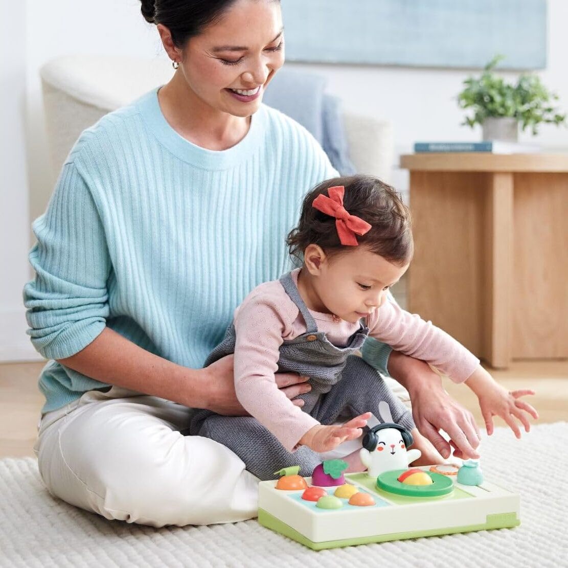 Pierwszy muzyczny instrument w postaci miksującego króliczka. Ta zabawka inspirowana kolekcją Farmstand czyli prawdziwym ogródkiem z warzywami i owocami wygrywa mnóstwo wesołych dźwięków.