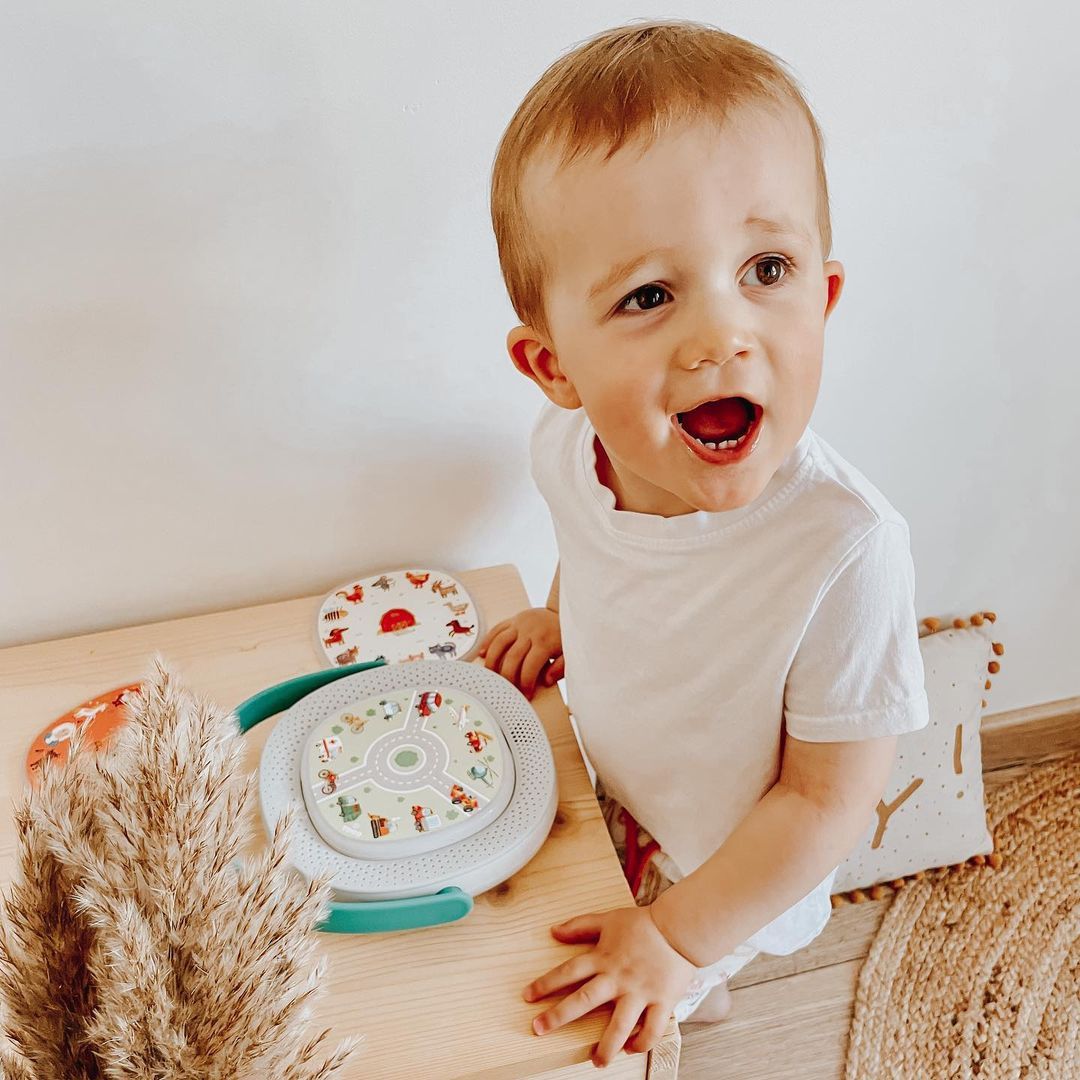 TIMIO Zestaw startowy + 5 dysków to interaktywna dźwiękowa zabawka edukacyjna, która pomaga dzieciom rozwijać wiedzę i słownictwo w różnych językach. Przeznaczona dla dzieci w wieku od 2 do 6 lat. Naucz się alfabetu, liczb, kolorów, zwierząt i przedmiotów, słuchaj bajek, muzyki i rymowanek. Urządzenie posiada wgranych 8 języków (angielski, francuski, niemiecki, hiszpański, włoski, holenderski, portugalski i polski).