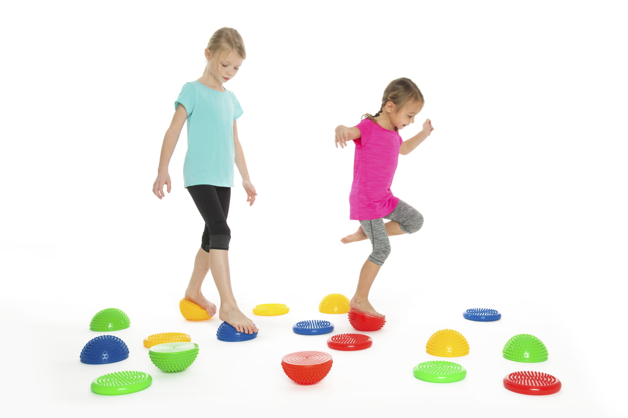 Półkule sensoryczne Tullo przeznaczone do ćwiczeń równowagi, korekcji wad postawy oraz masażu stóp. Bardzo dobrze sprawdzają się podczas zabawy z dziećmi, są uatrakcyjnieniem zajęć grupowych. Specjalne stożkowe kolce pobudzają receptory czuciowe i poprawiają ukrwienie.