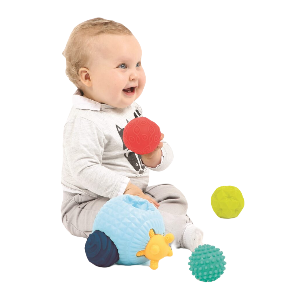 Zabawka ta jest zaprojektowana tak, aby stymulować zmysły dziecka poprzez różnorodne bodźce dotykowe i wizualne. Dzięki intrygującemu wyglądowi i atrakcyjnej kolorystyce piłki przyciągają uwagę malucha, co sprawia, że chętniej się nimi bawi. Różne tekstury i kolory piłek pomagają rozwijać zmysł dotyku, wzroku i zdolności motoryczne.